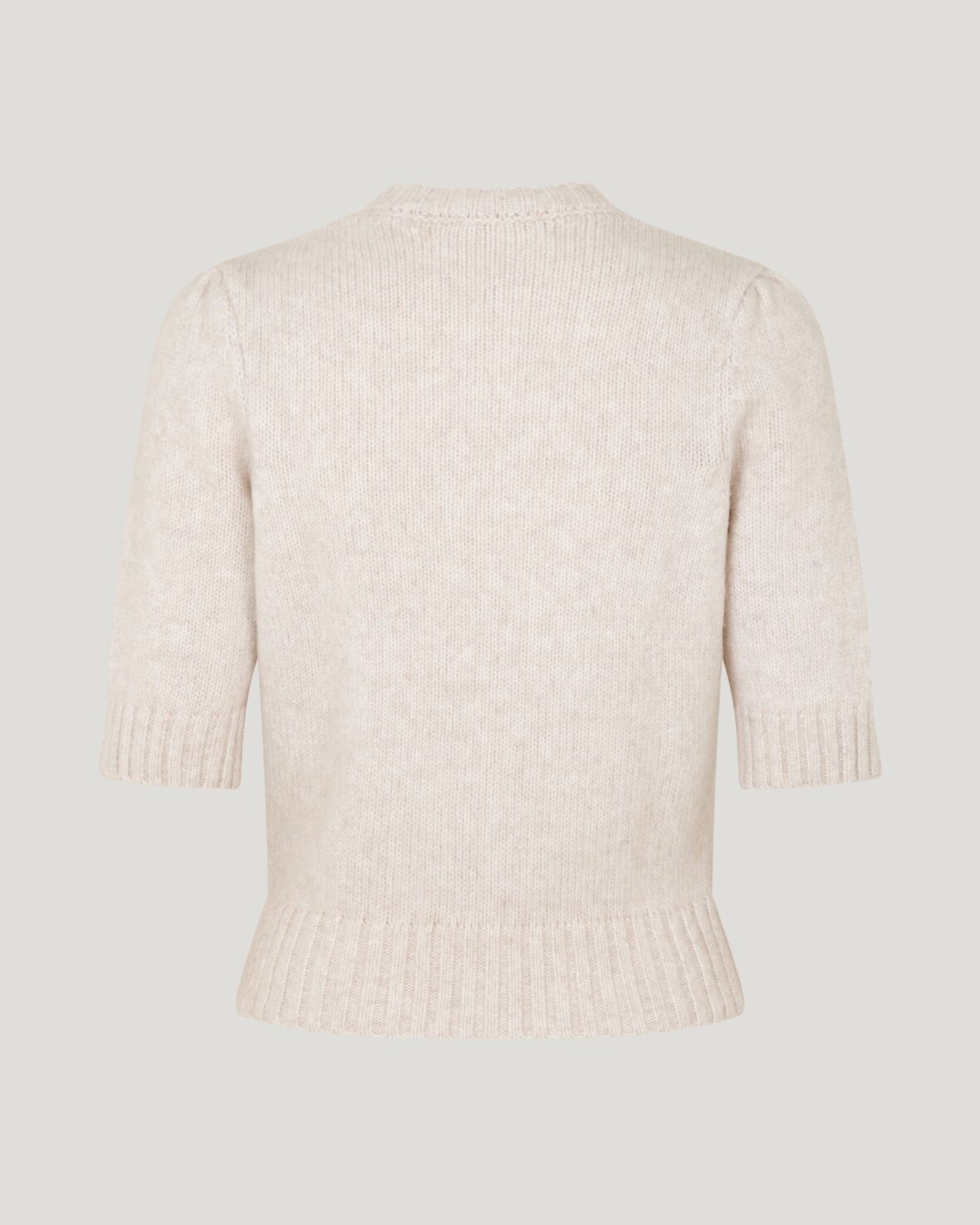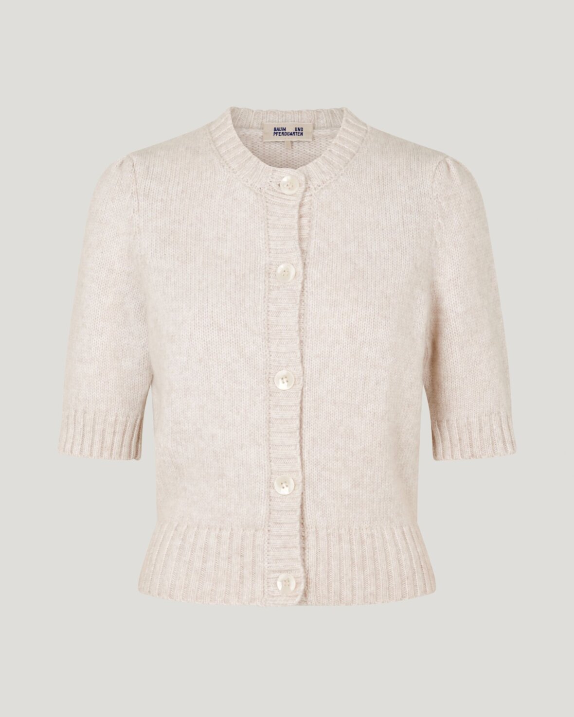 CARLEE STRIK fra BAUM UND PFERDGARTEN er en cropped, kraftig strikket cardigan med stor knaplukning og ribkant forneden, på ærmerne og i halsen. Den har en normal pasform. Den er fremstillet i en merinould- og bomuldsblanding.Kvalitet: 51% Merinould, 49% Bomuld