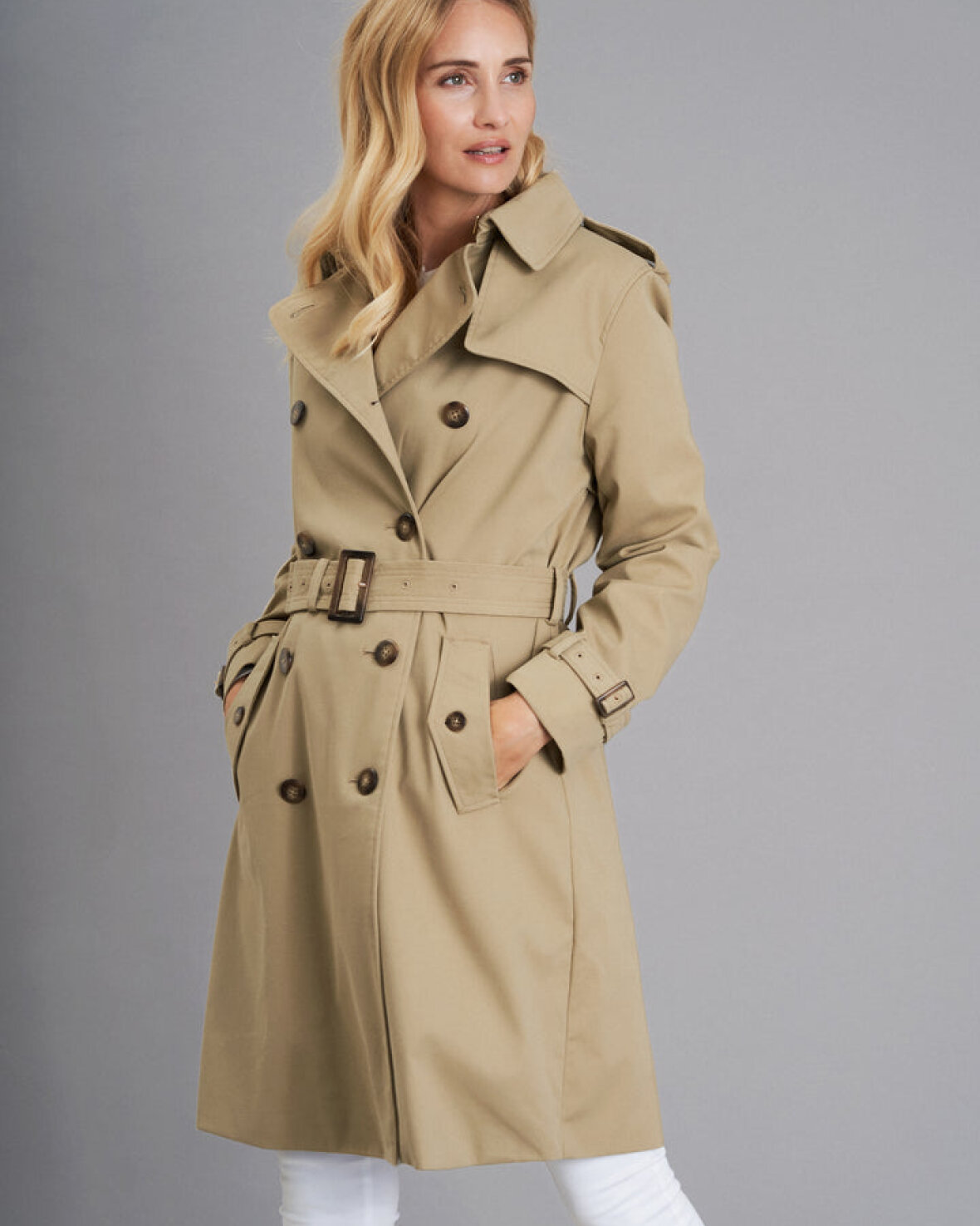 SOPHIE JAKKE - JUNGE er en klassisk og stilren trenchcoat med aftageligt bælte i taljen. Trenchcoaten har skulderstropper, sidelommer samt stropper med spænde på ærmerne. Jakkenhar slids bagpå, foer inden i og inderlomme med lynlås.