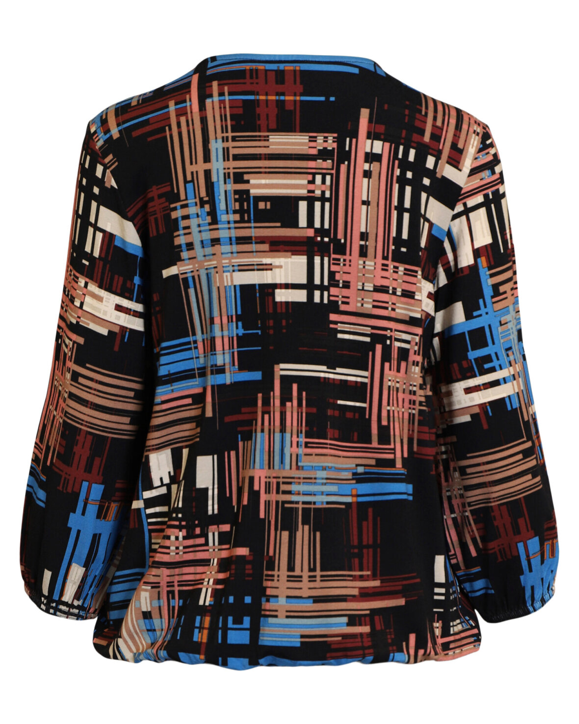 T-SHIRT 213919 - SIGNATURE er en super lækker og smart T-shirt i blød og lækker kvalitet. T-shirten har en flot rund halsudskæring og et smukt gennemgående mønster i flotte nuancer. Ærmerne er halvlange og afsluttes med en smal kant i elastik, hvor stoffet folder flot omkring. Bunden af T-shirten afsluttes ligeledes med samme elastikkant.Kvalitet: Viskose: 95%, Elasthan: 5%
