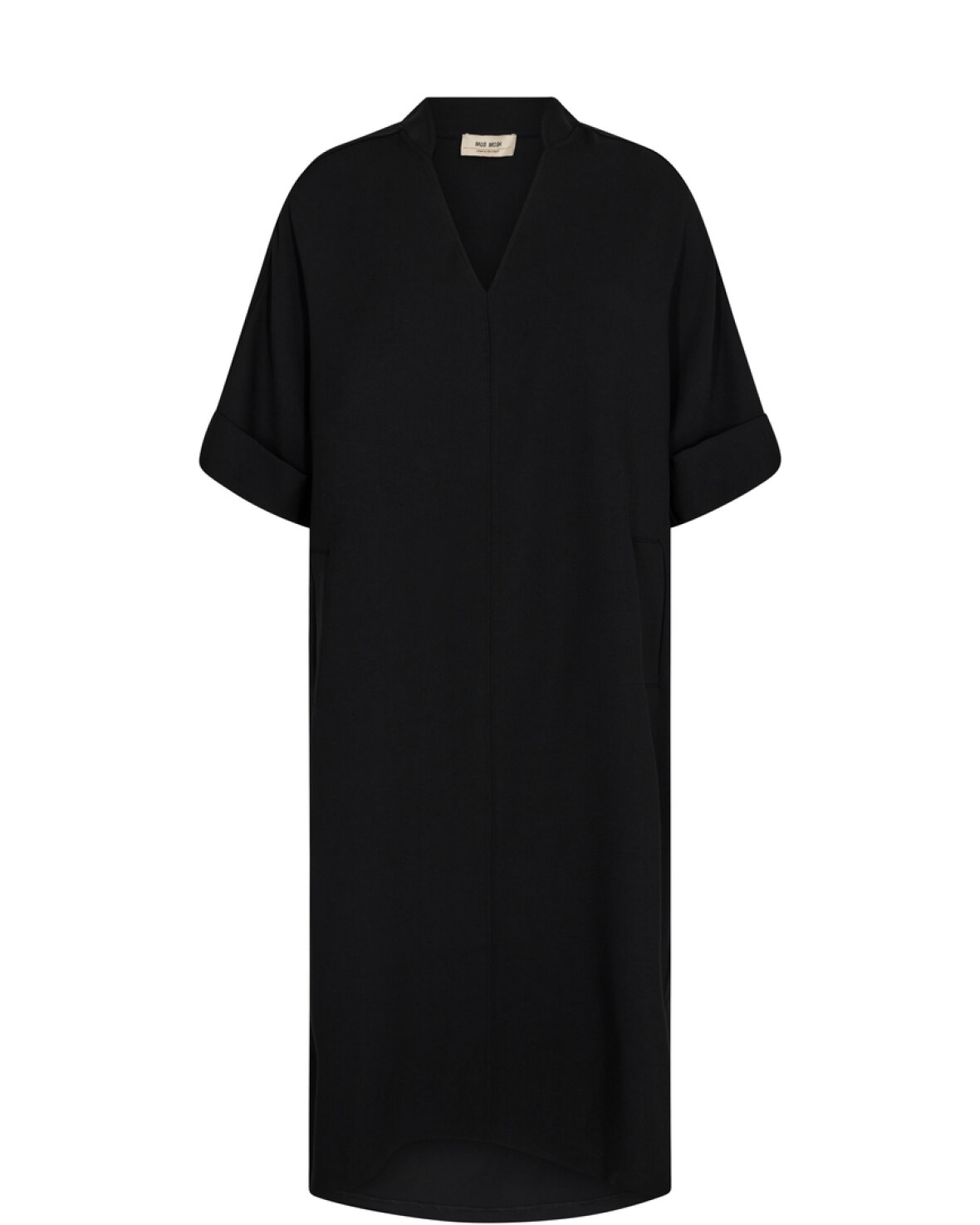 ASHLA LEIA DRESS-KJOLE-MOS MOS er en super skøn kjole er designet i en regulær silhuet med en flatterende V-hals, korte vige ærmer, lommer foran og slids i siden som finish. Passer den perfekt til stort set altKvalitet: 57% Genbrugspolyester, 40% Polyester, 3% Elastan