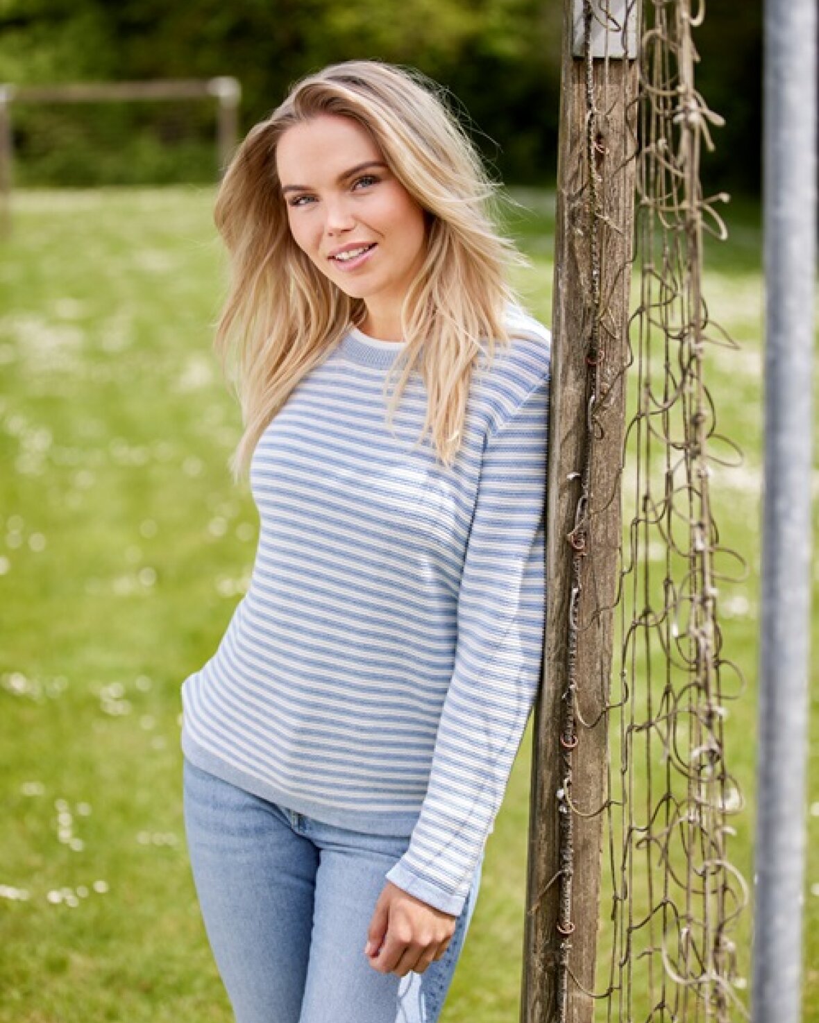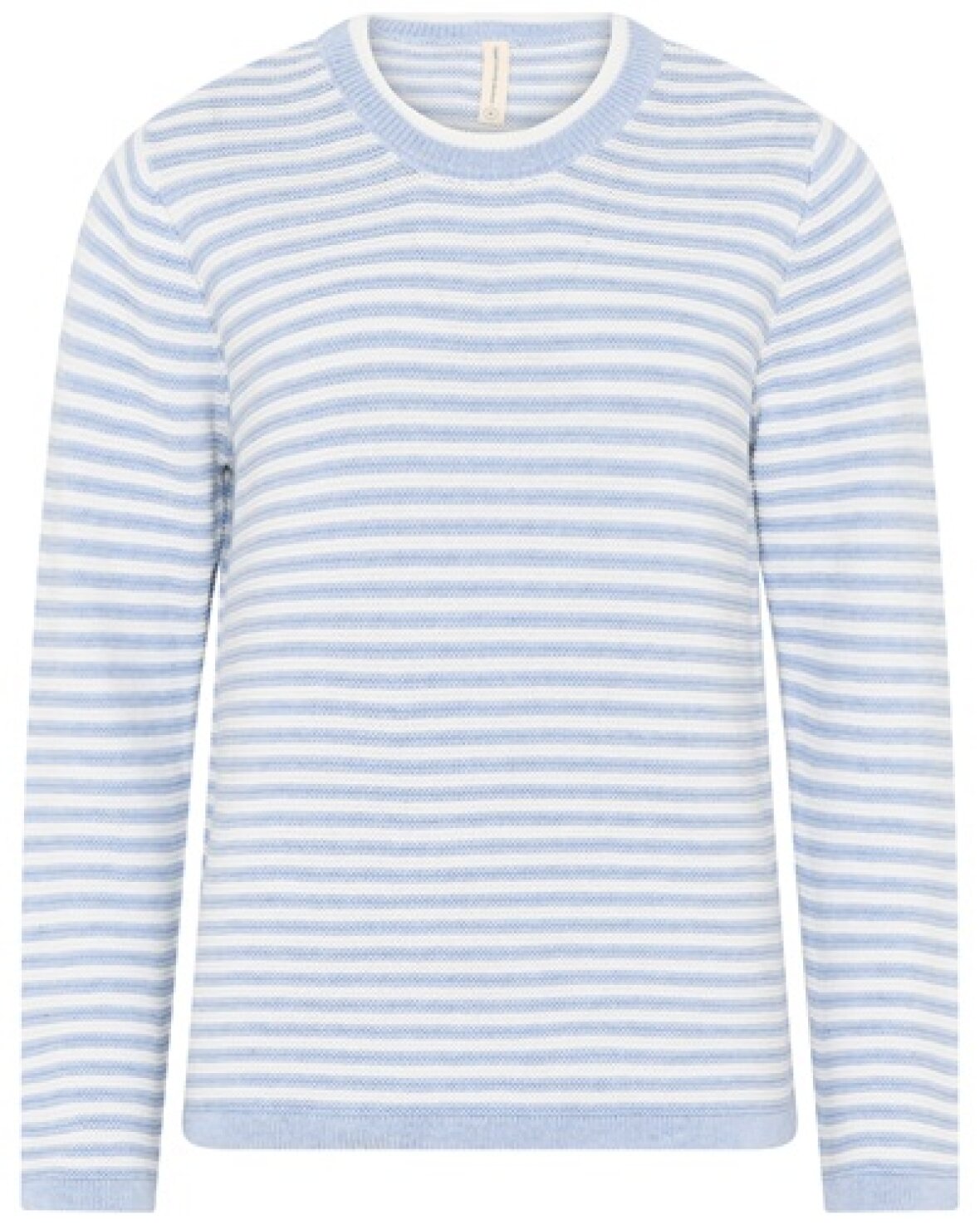 STRIPED LINKS PULLOVER - SKOVHUUS er en dejlig stribet strik i lækker kraftig kvalitet, som gør den dejlig varm at have på. Et smart tofarvet design med smalle striber og ensfarvet ribkanter i ærmer og kant. Den runde halsudskæring er designet med en ekstra fin detalje i form af en tofarvet ribkant, som giver trøjen et mere sportsligt udtryk.Kvalitet: 100% Økologisk Bomuld