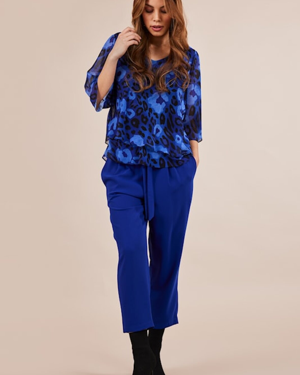 TOP 7470 - MOLLY JO er n smuk let bluse med det skønneste print i dejlige farver. Blusen er med rund halsudskæring samt smarte ærmer.Kvalitet: 100%Polyester