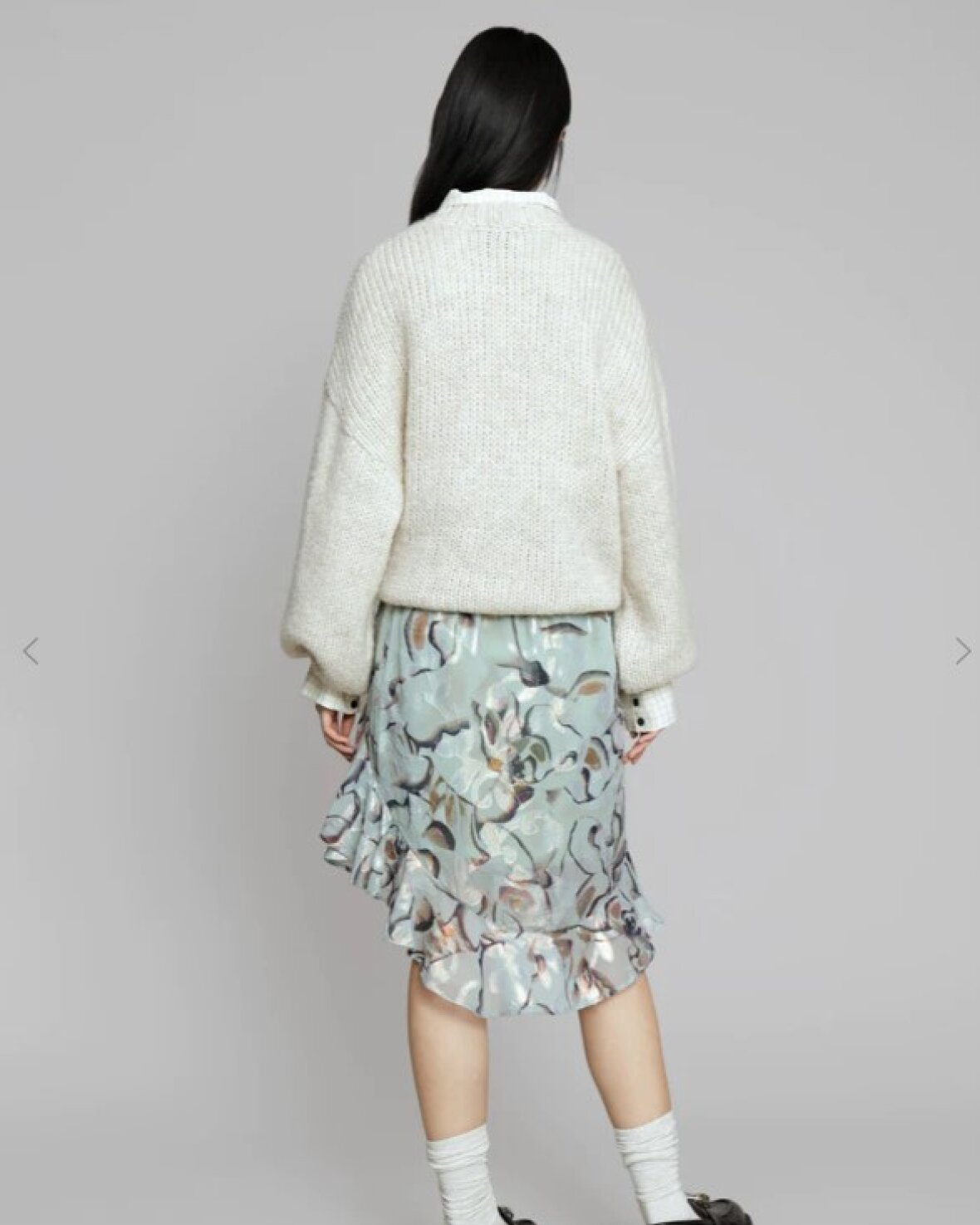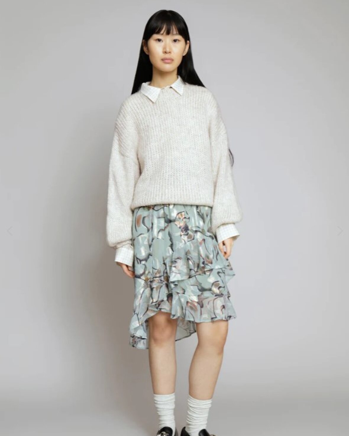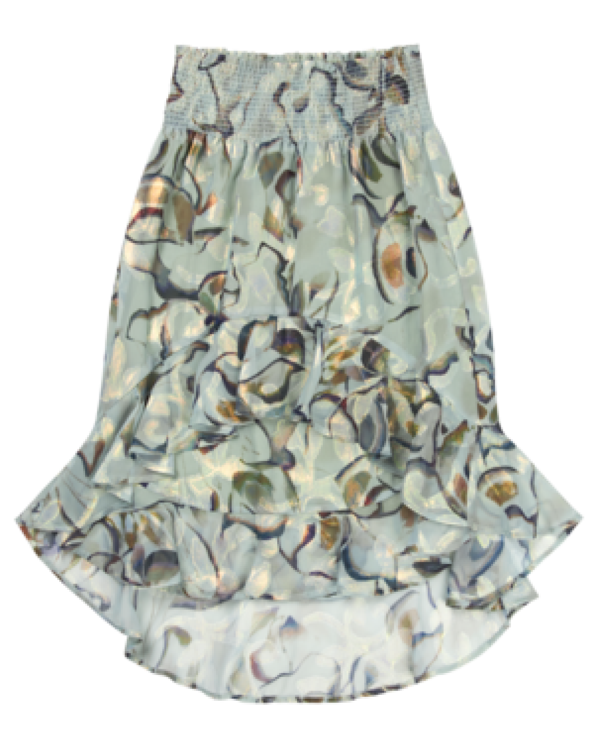 ESPRESINA NEDERDEL - MUNTHE er en smuk højtaljet nederdel i et smukt print med flæse detaljer. Nederdelen er lavet i en genanvendt polyester blanding og har en elastisk talje.