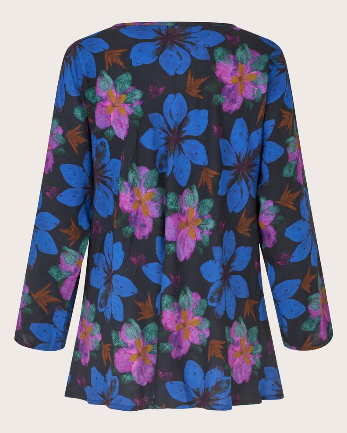 BLUSE 1008028 - MASAI er en smuk top er essentiel i ethvert look, og denne mønstrede top vil redde dig fra mange tøjkriser. Toppen er fremstillet i blød viskose og skåret i vores populære bias-snit, der får stoffet til at smyge sig elegant ind til kroppen. Den er designet med rund hals og lange ærmer. Brug toppen til en ensfarvet buks eller nederdel for et ubesværet feminint look.