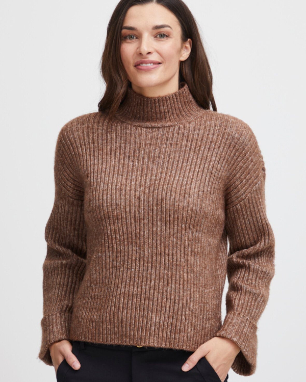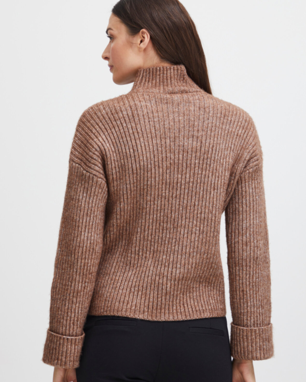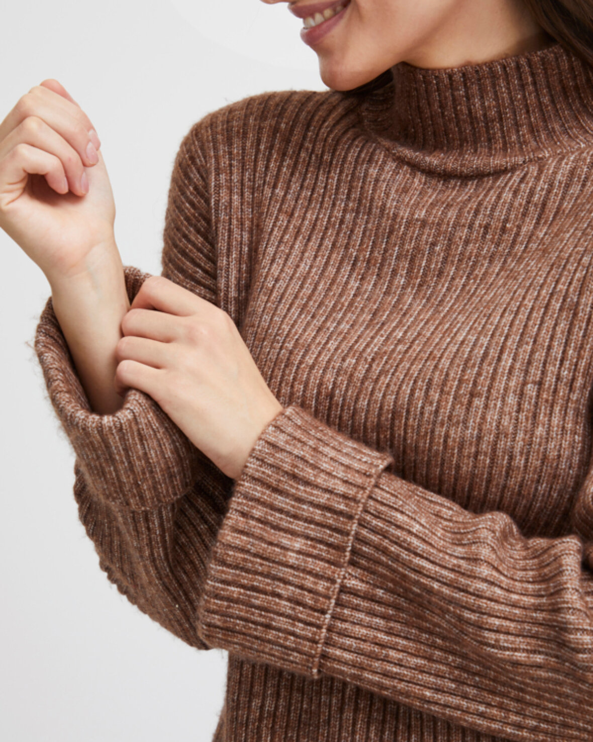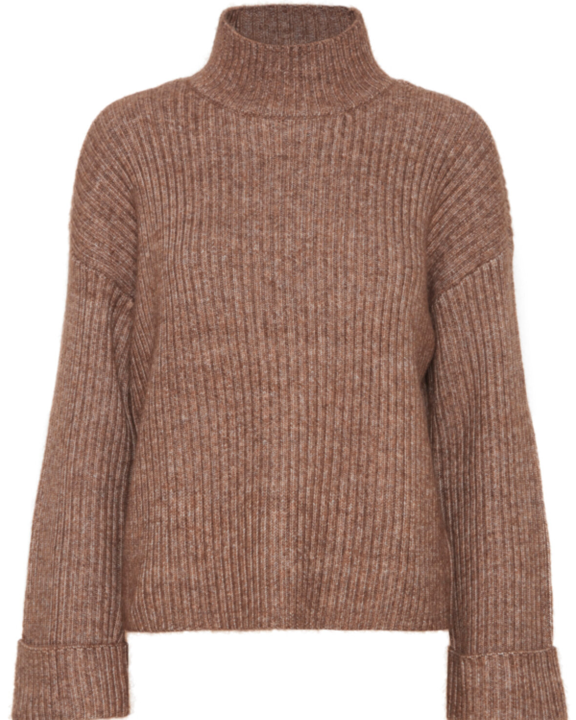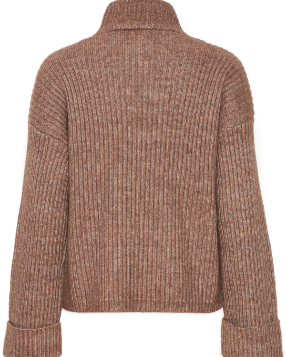 FRELLY PU 1 STRIK - FRANSA har en høj halsudskæring, og lange ærmer, som går ud i bunden, og har en smart fold op effekt. Strikkene r super klassisk og kan styles på mange smarte måderKvalitet: 61 % Polyester (genanvendt) 35 % Akryl 4 % Uld