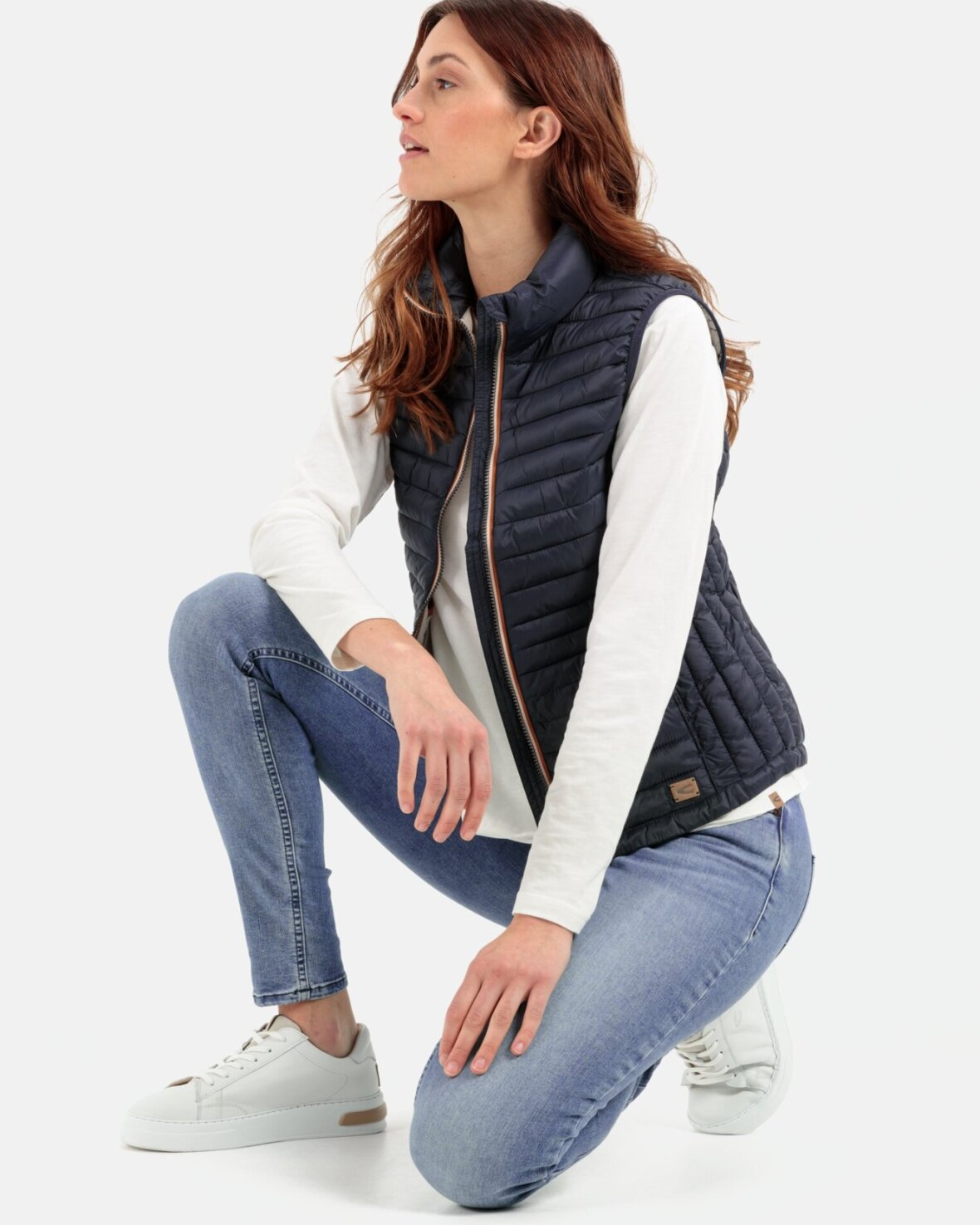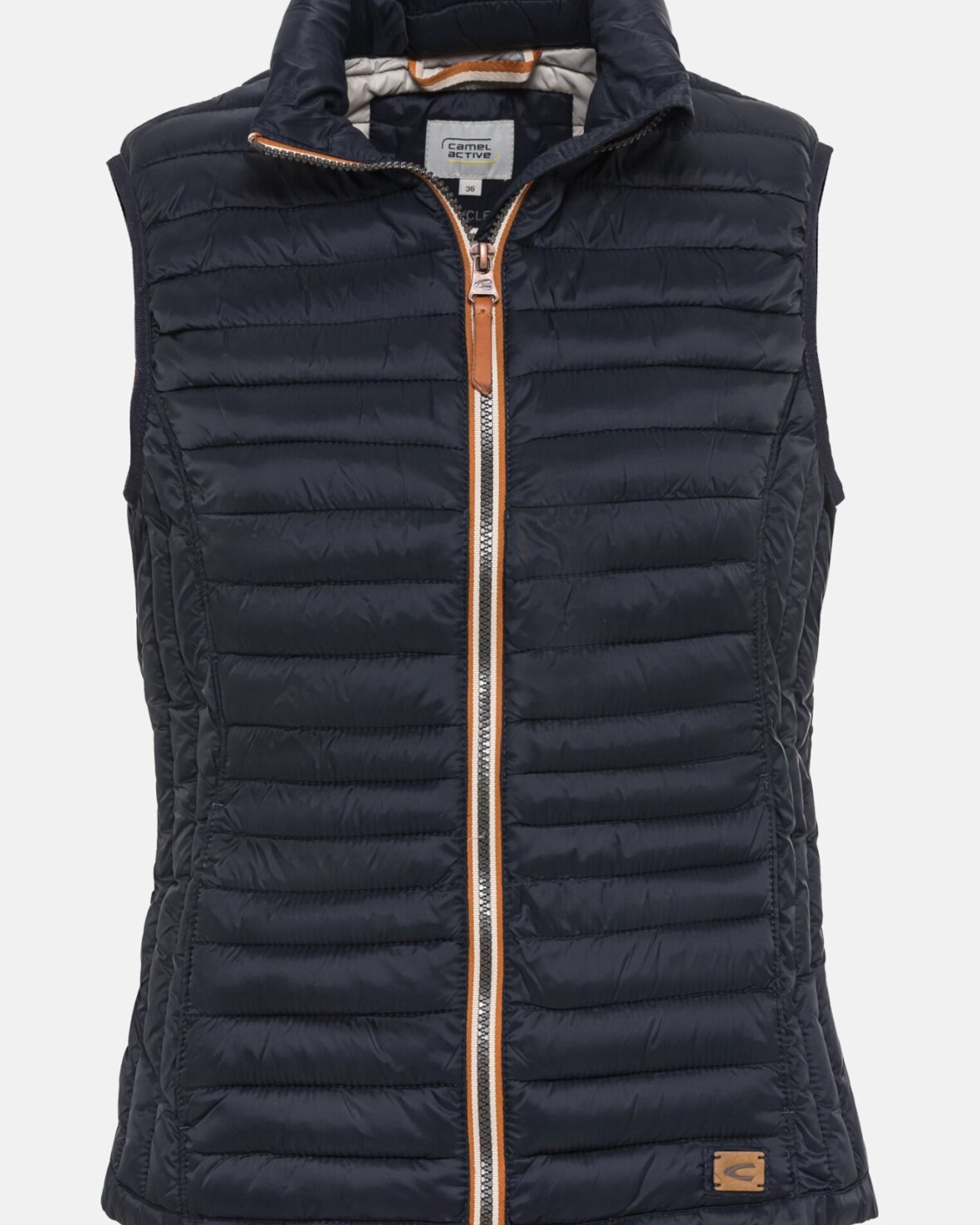 VEST 360250-CAMEL ACTIVE denne quiltede vest har en veldesignet blanding af stoffer, der beskytter mod kulde og ugunstige vejrforhold. Yderstoffet består af 100% genanvendt, vandafvisende polyamid og en dunfri foring af quiltede paneler plus en foldekrave hjælper også med at holde vind og regn ude. Vesten lukkes helt op til kraven med en tovejs lynlås. Et let tilspidset snit sørger for en rigtig god pasform, og der er en camel active læder logodetalje over forneden.Kvalitet: 100% polyamid, vat: 100% polyester