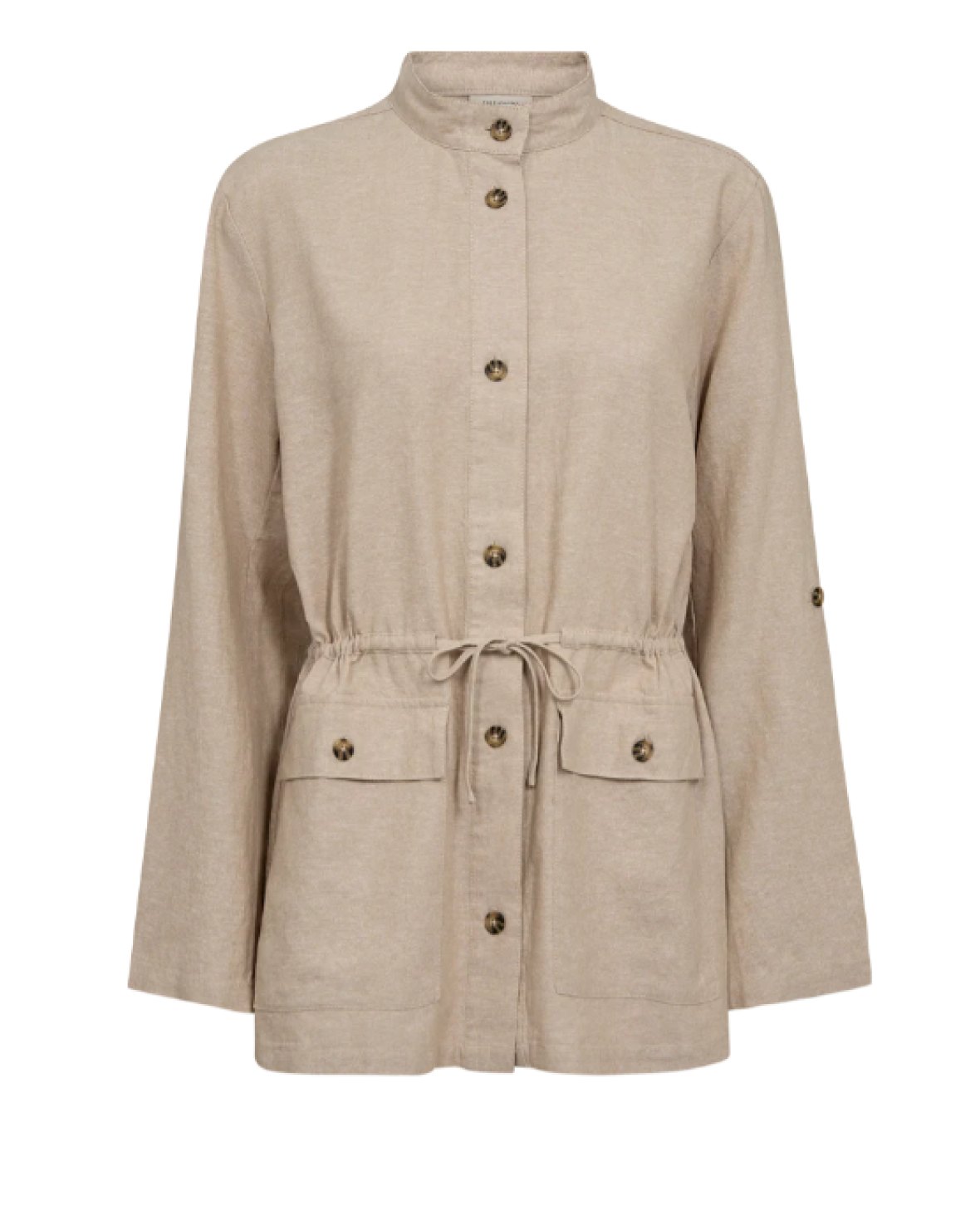 FQLAVA JACKET - FREE/QUENT er en super smart jakke fra i en let kvalitet. Jakken er casual i modellen med en justerbar snøre i taljen, lommer og knaplukning på fronten, lange ærmer med strop til opsmøg samt en løs pasform.Kvalitet: 55% Hør, 45% Viscose