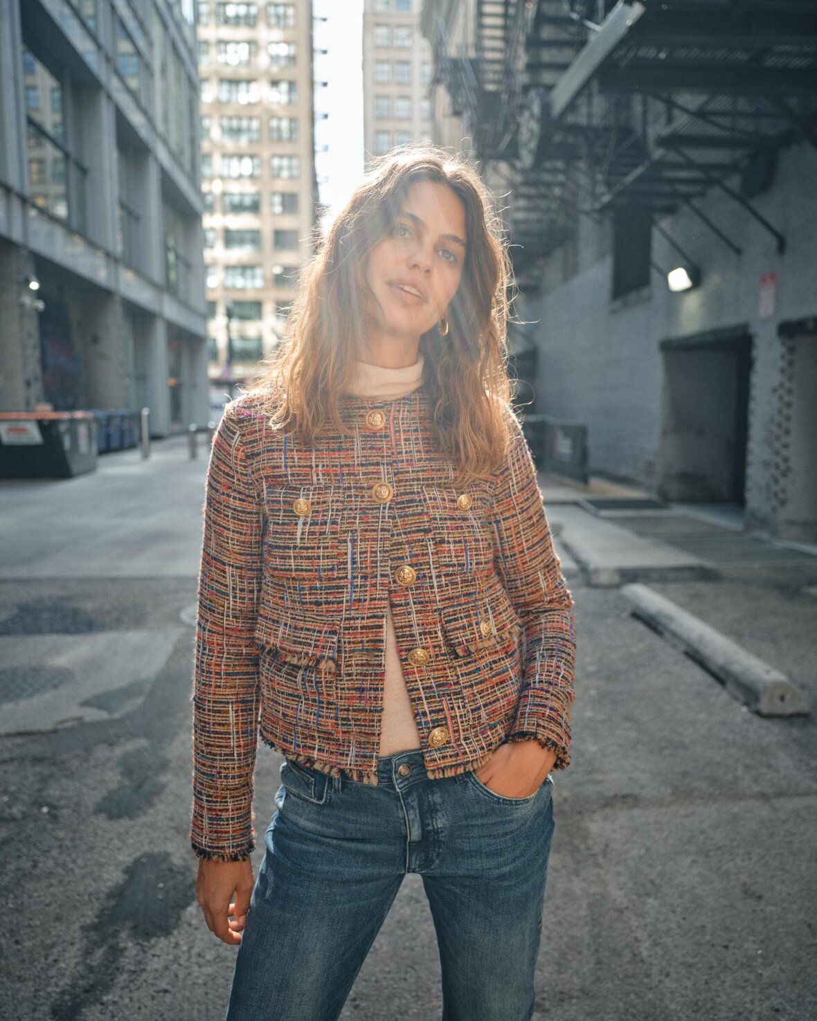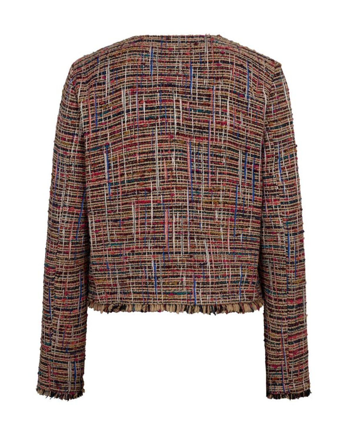 MMFLORA TEX JACKET - MOS MOSH er en luksuriøs 90'er-inspireret jakke i en skøn bouclé-tekstur. Den har prægede guldknapper og flere lommer foran for et tidløst touch. Med rå kanter og manchetter for en elegant frynse-effekt. Sæt den sammen med blå denim eller tailored wide-leg-bukser for et klassisk elegant udtryk med et moderne tvist.
