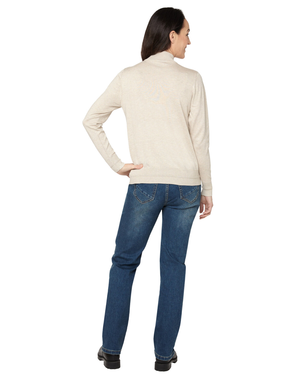 PULLOVER 214039 - JENSEN er en lækker rullekravebluse i et enkelt udtryk. Rullekraven har en fin detalje i form af en smal kant, som er gennemgående på halsen, ærmer og bunden af blusen.Kvalitet: 70% Viskose, 30% Polyester