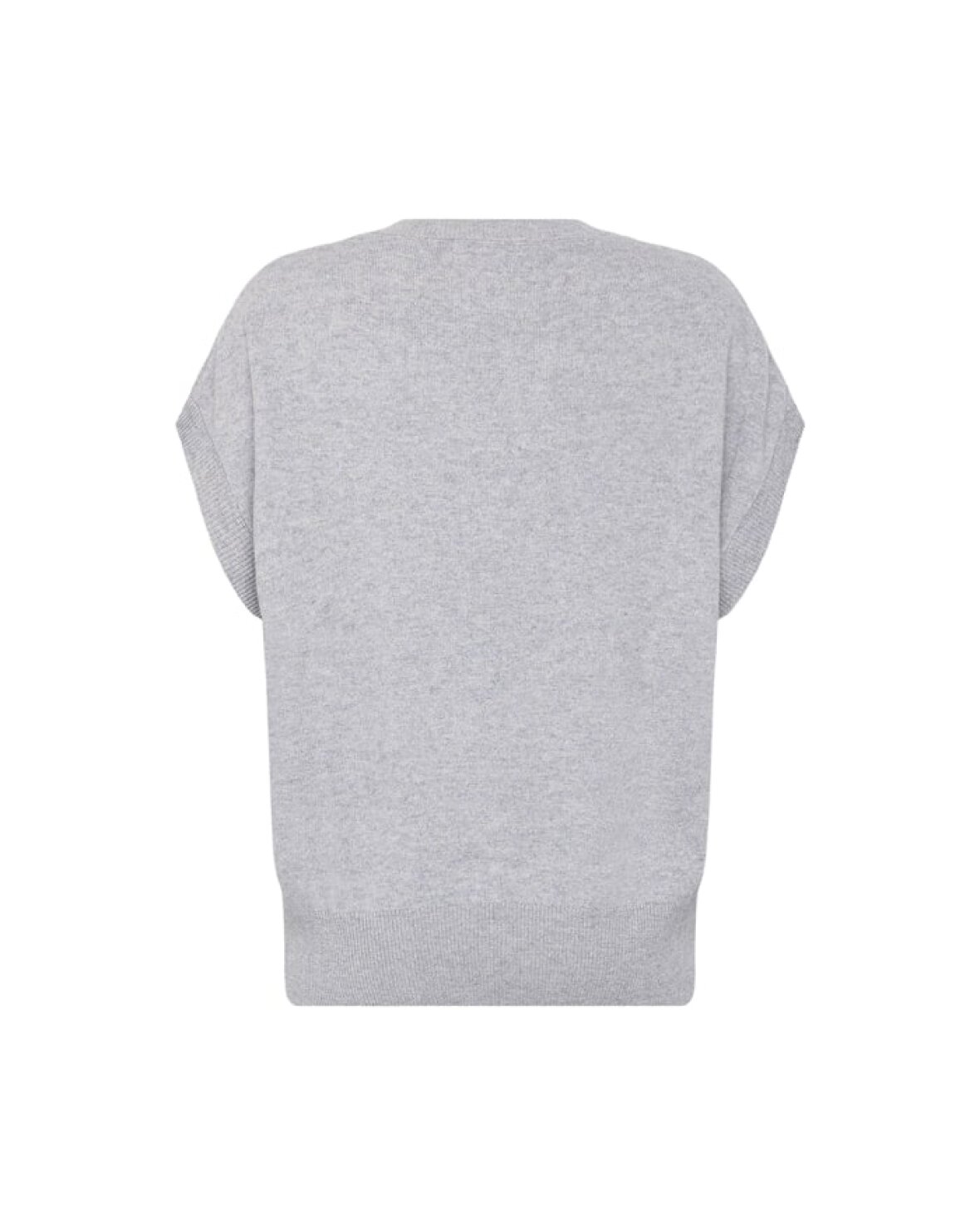 VEST HARRIET - MANSTED er en dejlig kort strikvest med afslappet pasform og smal rib forneden. vesten har en slids i midten af halsen og ribkanter