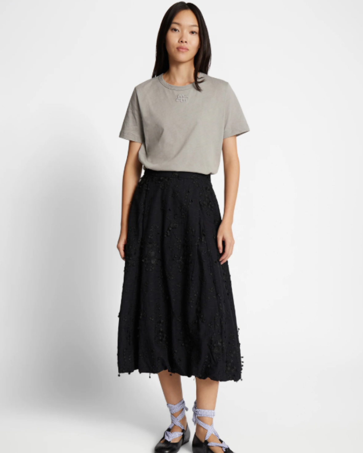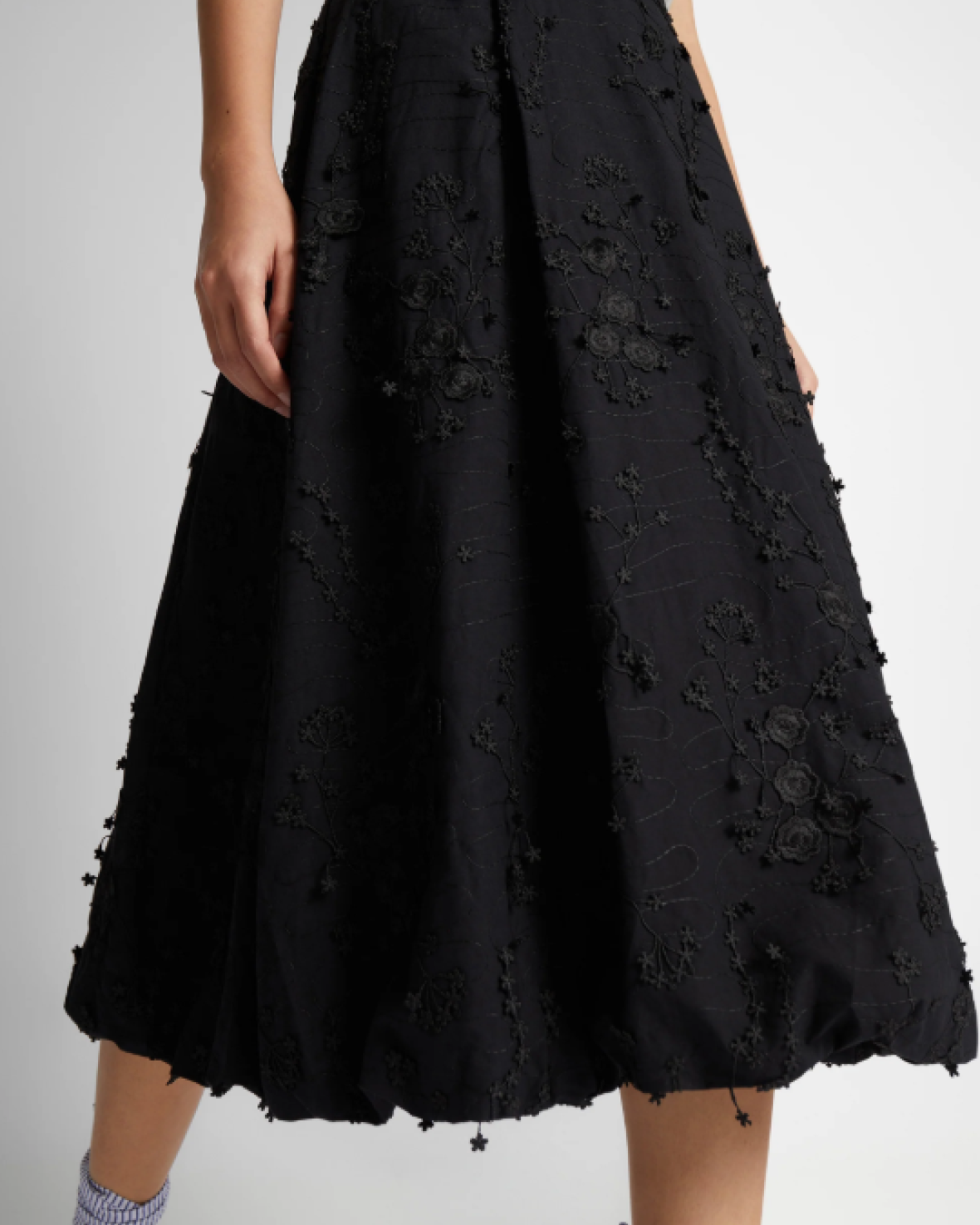 FIAMMA NEDERDEL - MUNTHE er en smuk ballon nederdel med elegante all-over blomster applikationer. Nederdelen er designet med et smalt bånd i taljen og lukkes med en lynlås bagpå.Kvalitet: Økologisk bomuld