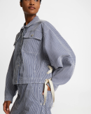 JEANS JAKKE - MUNTHE er en super smart nålestribet denim jakke, med smukke bindebånds detaljer på hver side. Denne jakke har lommer, brede ærmer og en klassisk denim knaplukning. Jakken har en løs pasform og er lavet af en økologisk bomuldsblanding.