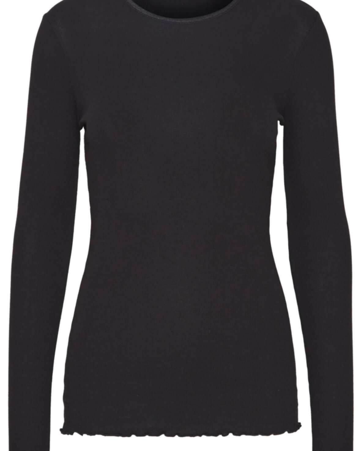 FRHIZAMOND TEE 12 - FRANSA Tætsiddende langærmet top med blød ribstruktur, rund halsudskæring og diskrete bølgede afslutninger ved ærmer og kant. Enkelt og cool look.Kvalitet: 47% Bomuld, 47% Modal, 6% Elastan