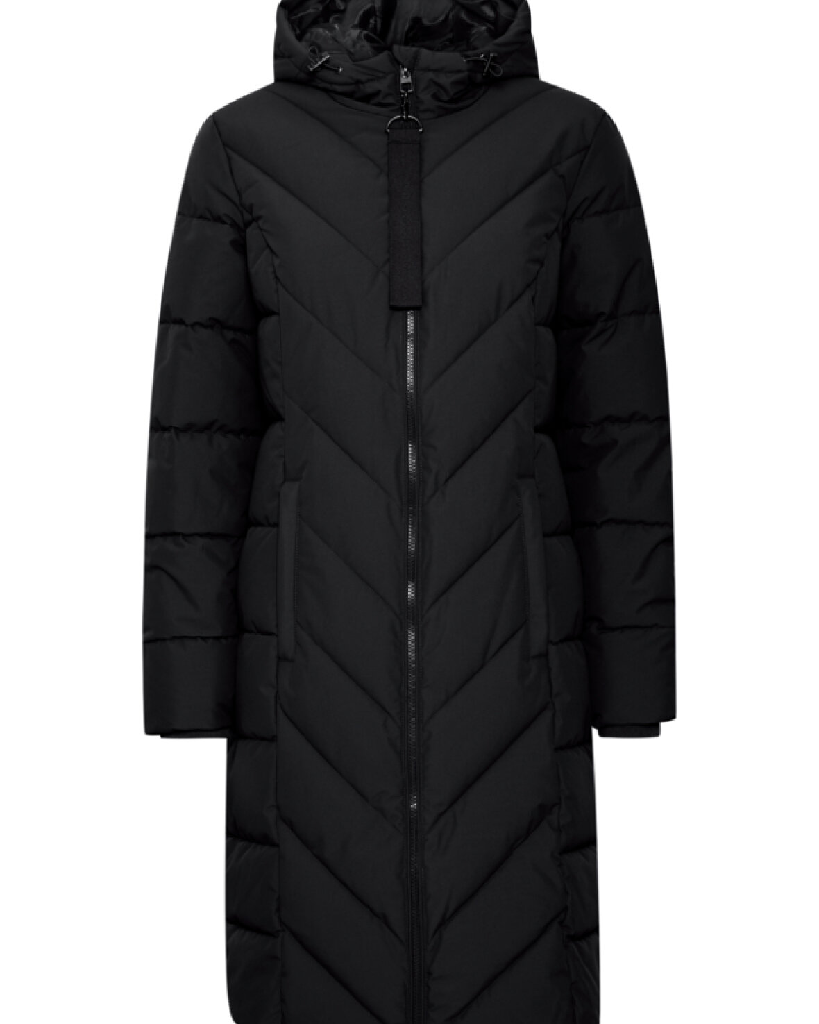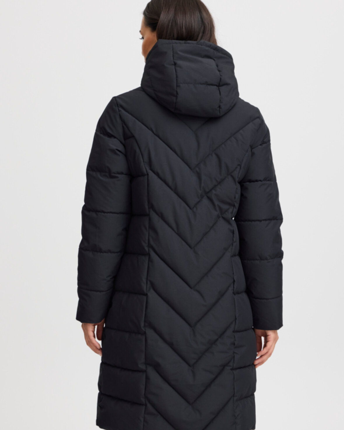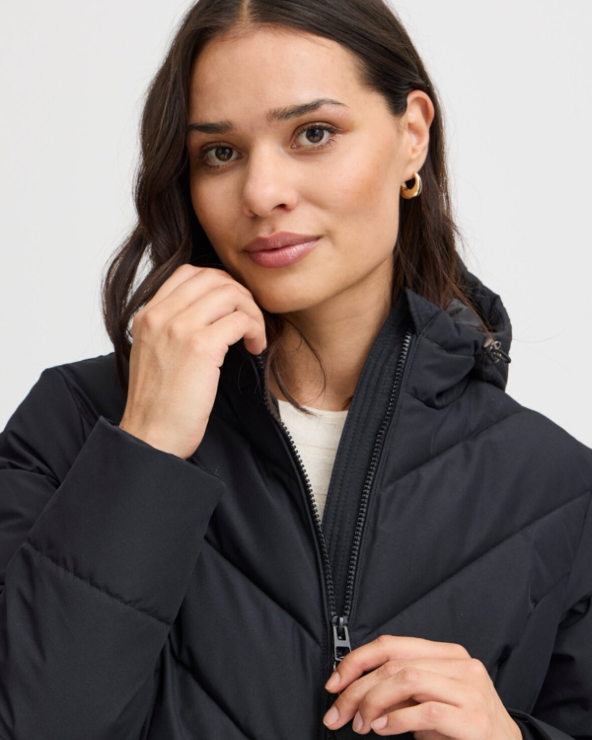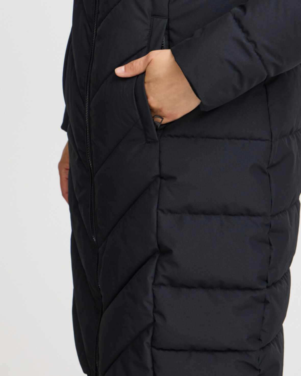 FRMAISE JAKKE 1 - FRANSA Denne lange dame-dunjakke har en klassisk pasform, lynlås foran, varm hætte og vandret quiltning for øget komfort og varme. Velegnet til daglig brug og praktisk lag-på-lag gennem de kolde måneder.Kvalitet: 100% Polyester