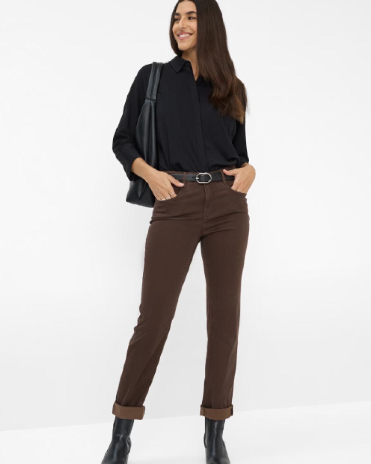 MARY BUKS - BRAX den perfekte ledsager til stilfulde efterårs- og vinteroutfits. Disse bukser forener tidløs elegance med et moderne touch og imponerer i efterårsfarver, der kan kombineres på mange måder. I en Regular Fit med lige snit og normal taljehøjde sikrer damebukserne en optimal pasform. De klassiske detaljer som påsatte baglommer, en praktisk møntlomme samt stiklommer giver bukserne et sporty præg, mens den diskrete syning og den dekorative applikation på baglommerne skaber raffinerede highlights. Hertil kommer den velkendte Cotton Dream-kvalitet, der med en fremragende farveglød giver ethvert outfit det lille ekstra. Fremstillet i en fin satin begejstrer også det elastiske materialemiks af lyocell, modal og bomuld med en særligt blød fornemmelse, formstabilitet og let strækbarhed. Med disse bukser understreger du din individuelle stil og føler dig godt tilpas hele dagen – en perfekt kombination af design og komfort.Kvalitet: 40% Lyocell28% Modal17% Bomuld12% Elastomultiester3% Elastan