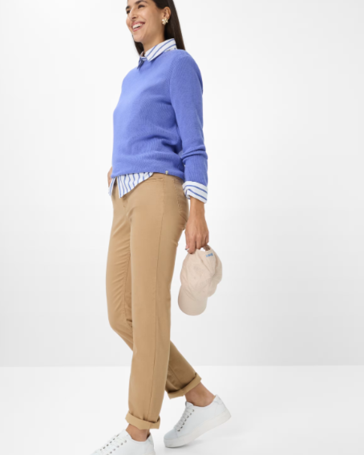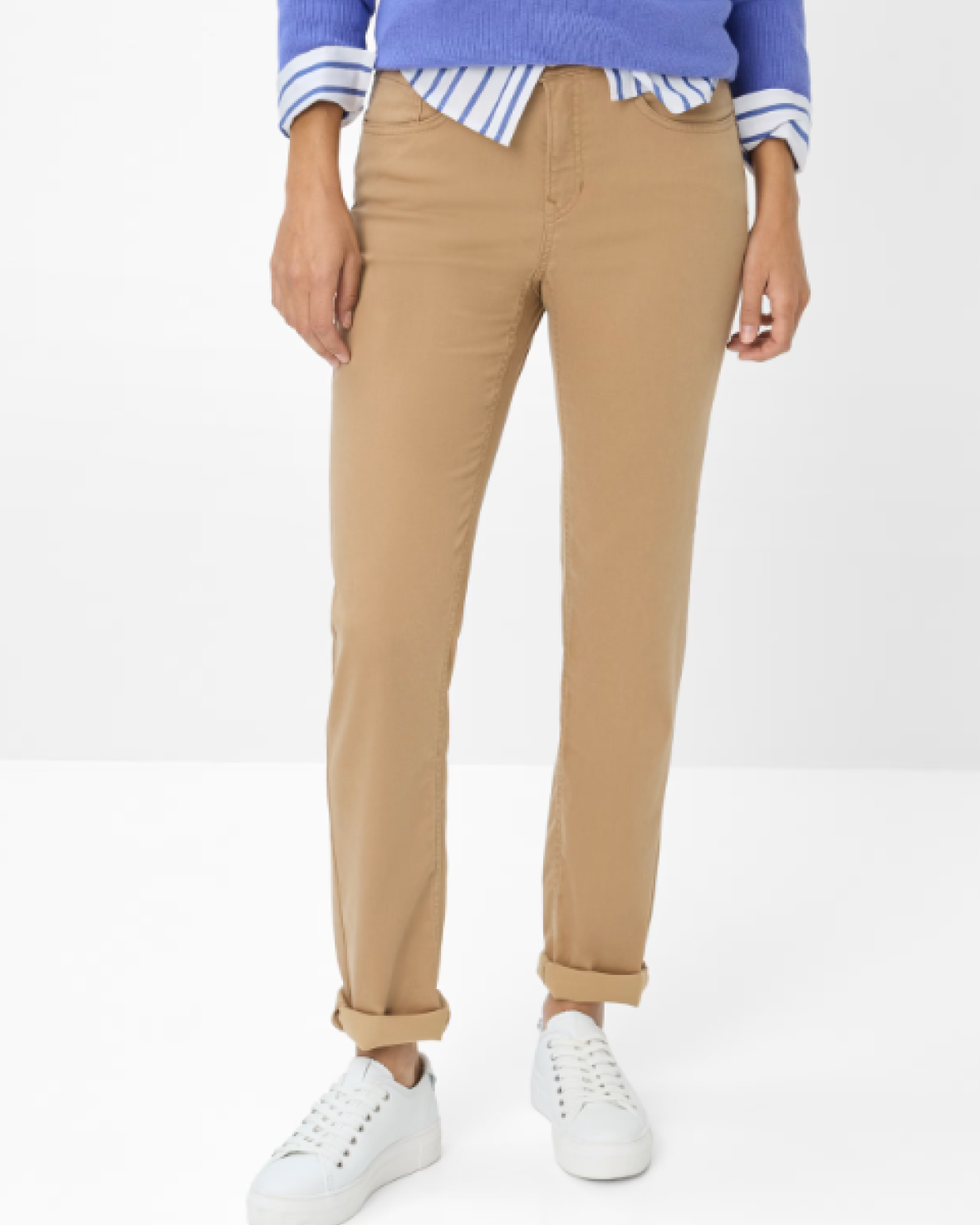 MARY BUKS - BRAX den perfekte ledsager til stilfulde efterårs- og vinteroutfits. Disse bukser forener tidløs elegance med et moderne touch og imponerer i efterårsfarver, der kan kombineres på mange måder. I en Regular Fit med lige snit og normal taljehøjde sikrer damebukserne en optimal pasform. De klassiske detaljer som påsatte baglommer, en praktisk møntlomme samt stiklommer giver bukserne et sporty præg, mens den diskrete syning og den dekorative applikation på baglommerne skaber raffinerede highlights. Hertil kommer den velkendte Cotton Dream-kvalitet, der med en fremragende farveglød giver ethvert outfit det lille ekstra. Fremstillet i en fin satin begejstrer også det elastiske materialemiks af lyocell, modal og bomuld med en særligt blød fornemmelse, formstabilitet og let strækbarhed. Med disse bukser understreger du din individuelle stil og føler dig godt tilpas hele dagen – en perfekt kombination af design og komfort.