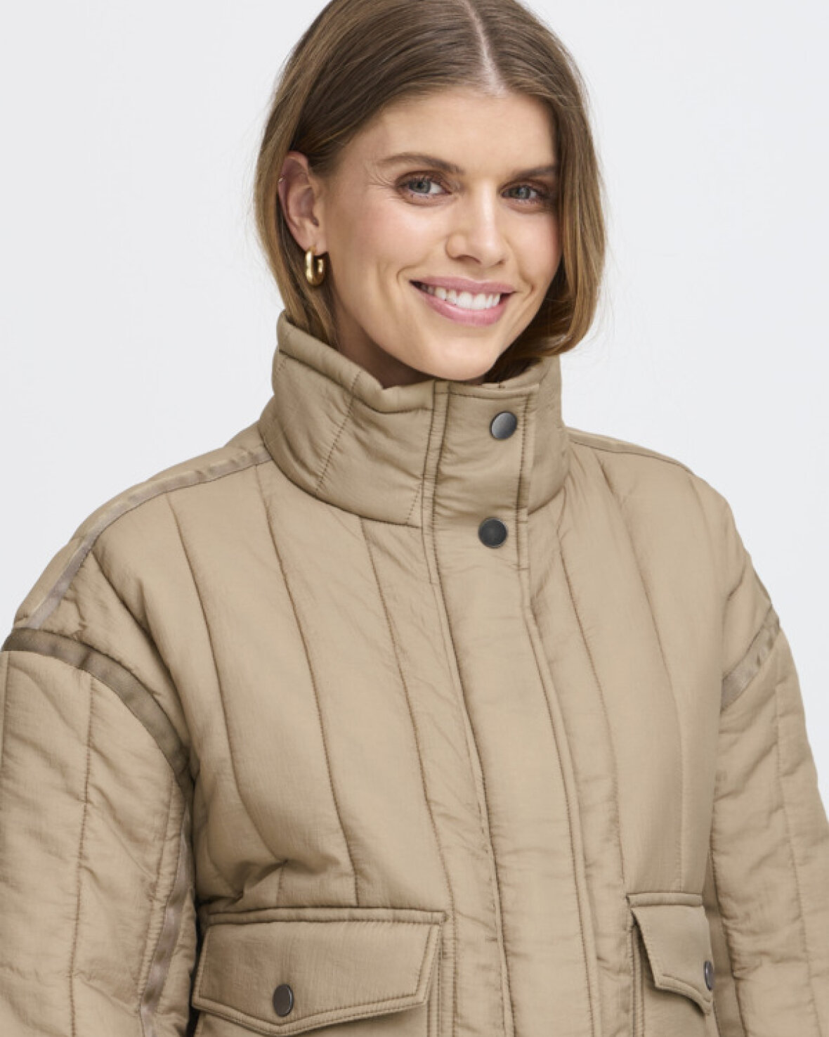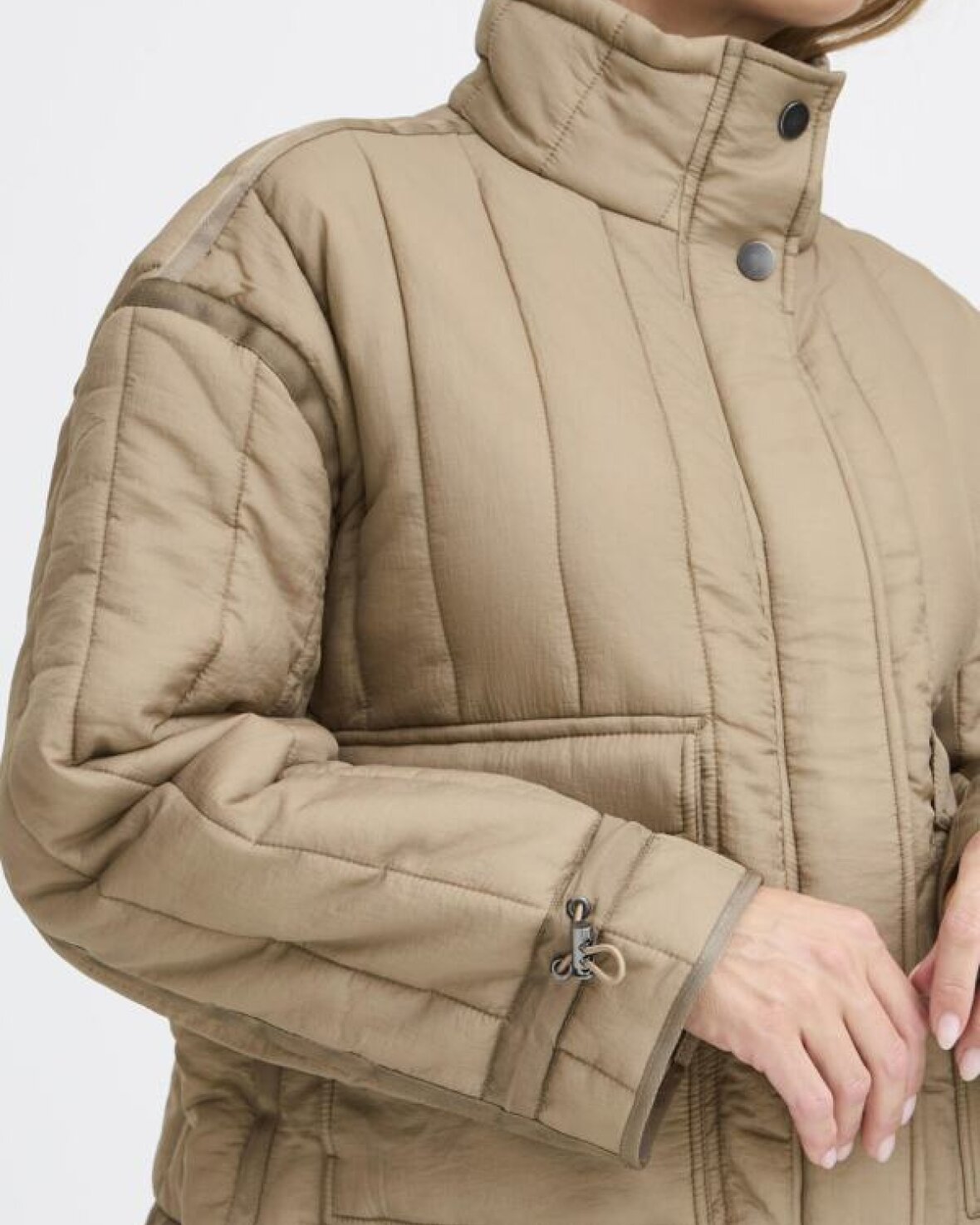 FREVITA JAKKE 1 - FRANSADenne kvindelige quiltede jakke har afslappet pasform, høj stand-up krave og trykknapper. De store frontlommer og snører i kanten giver justerbar komfort og funktionalitet, perfekt til daglig brug.Kvalitet: 100% Polyamid