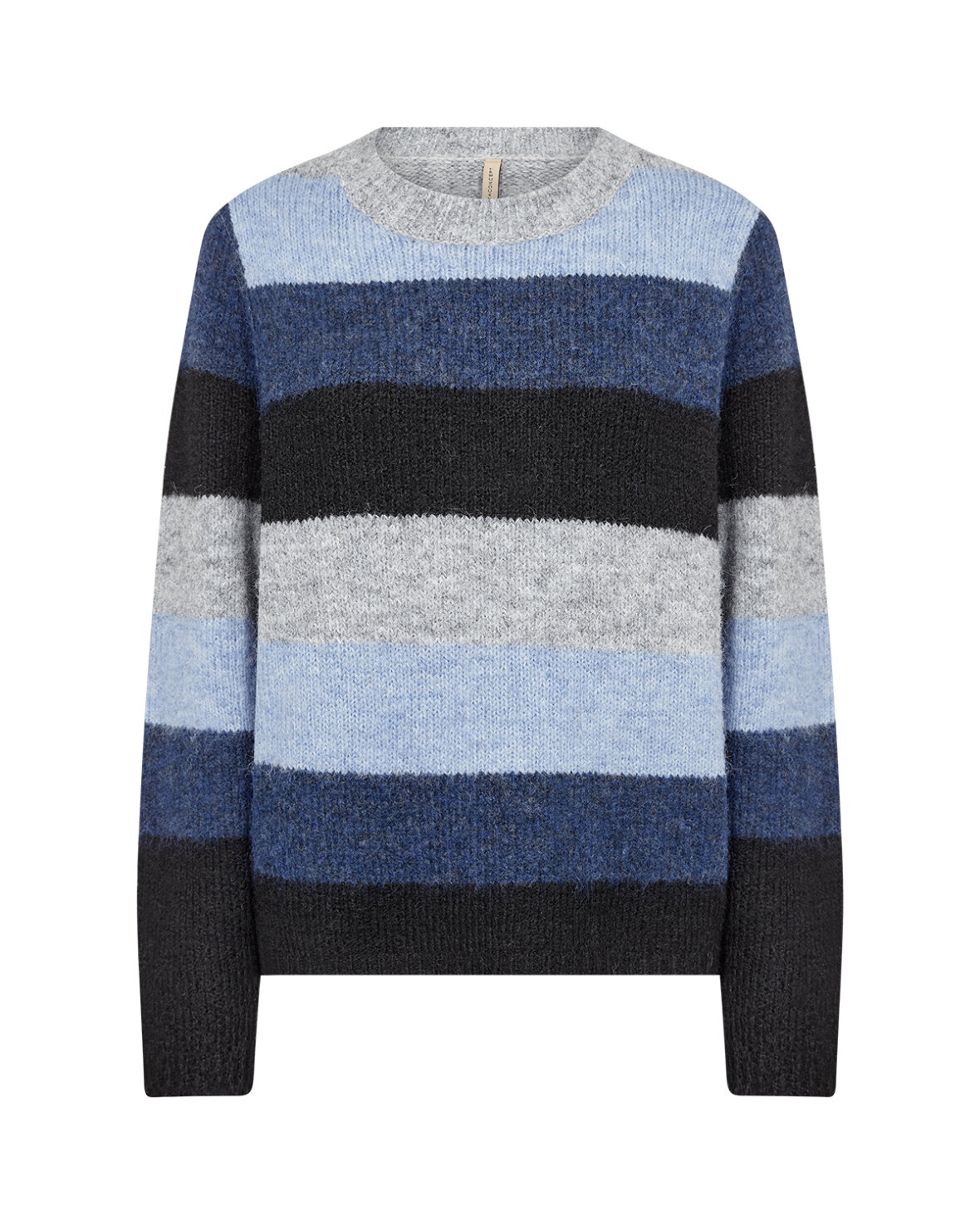 SC-ILINE 3 PULLOVER - SOYA er en smart pullover har en rund halsudskæring og dristige, brede vandrette striber i skiftende nuancer. Brug den sammen med jeans for et afslappet look, eller tag den over en skjorte med krave for ekstra tekstur.Kvalitet: 59 % genbrugspolyester, 21 % nylon, 11 % polyester, 8 % uld og 1 % elastan.