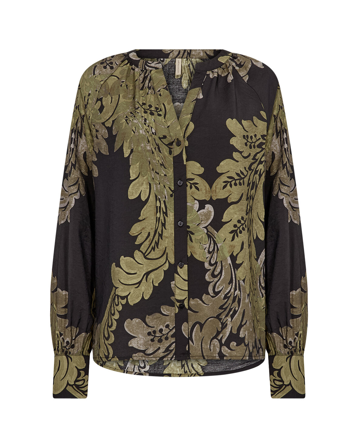 SC-VAIKE 1 SHIRT - SOYA har en blød, rynket rund krave, knaplukning foran, lange ærmer og et dristigt blomsterprint. Sæt den sammen med klassiske jeans for et afslappet look eller skræddersyede bukser til en mere formel lejlighed.Kvalitet: 85 % LENZING™ ECOVERO™-viskose og 15 % nylon