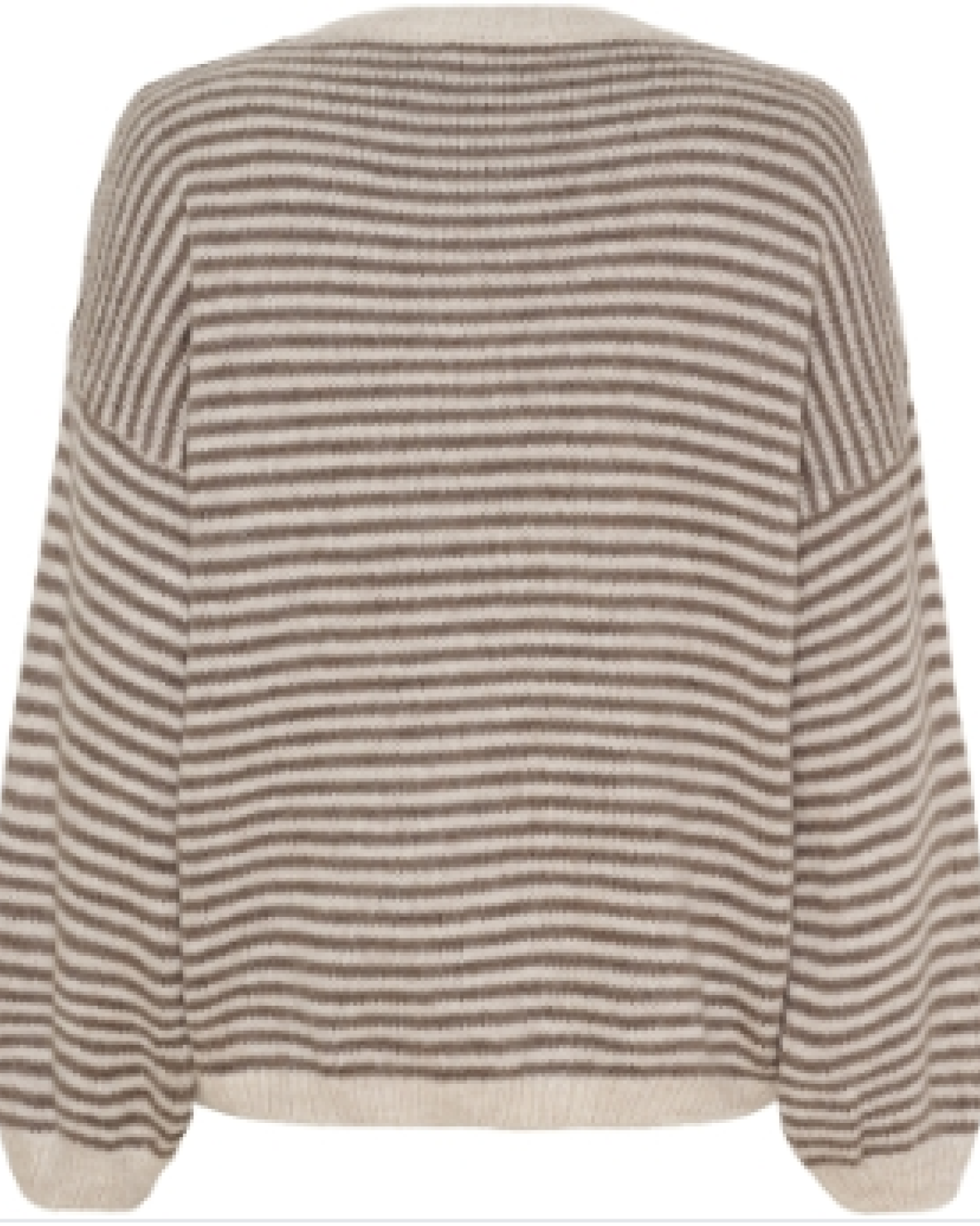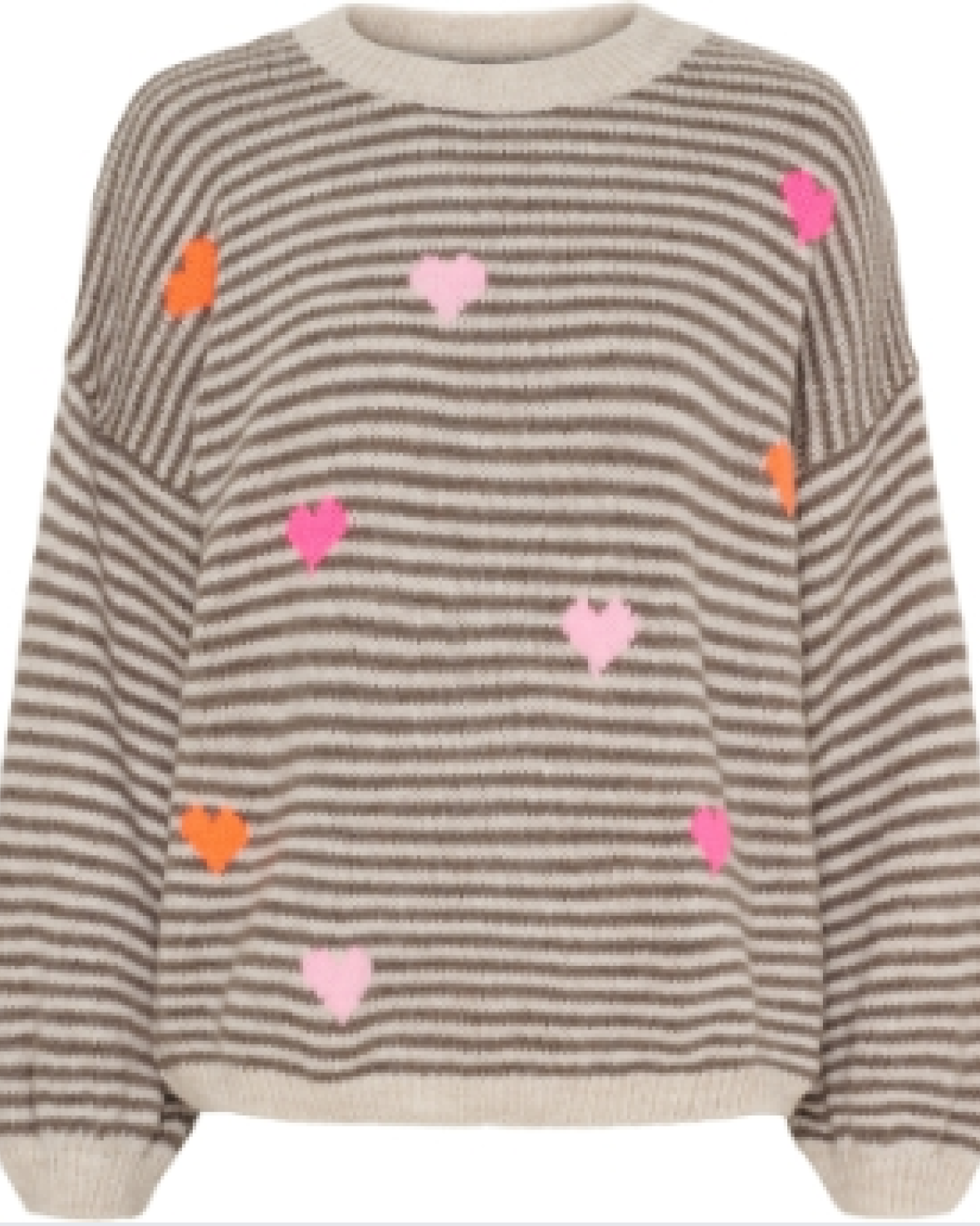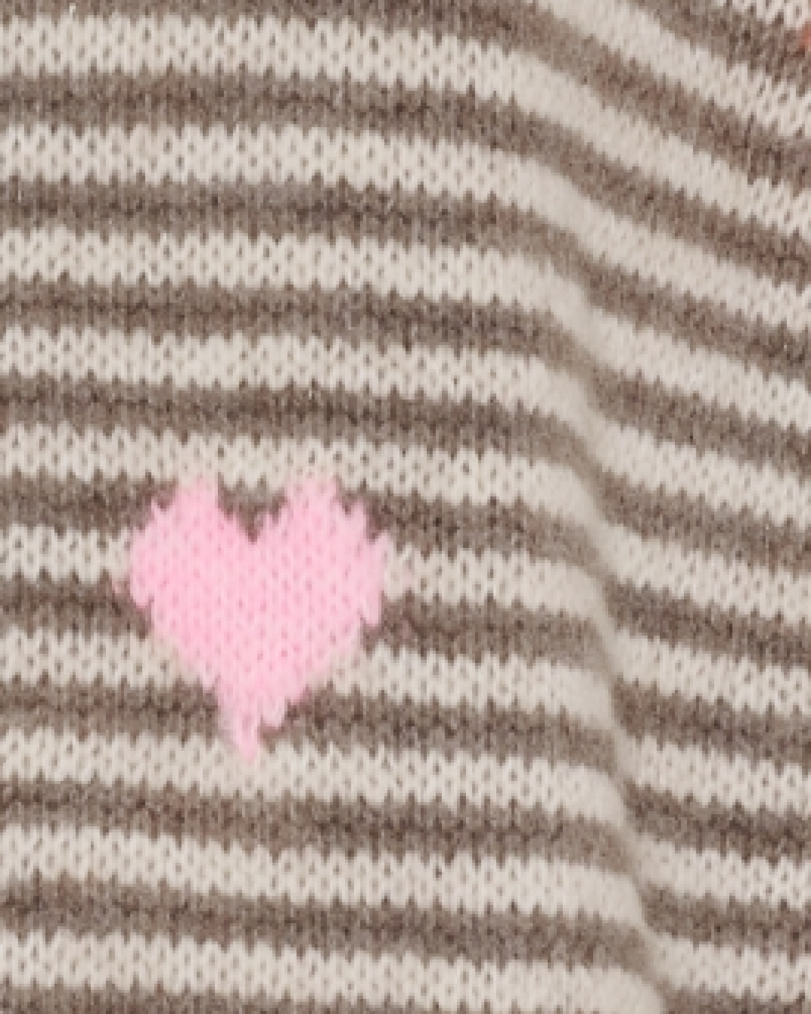 Strik 8112 Marta Du Chateau er en blød og hyggelig striktrøje med stribet mønster og fine hjertedetaljer, der giver et legende og feminint udtryk. Modellen har en afslappet pasform med rund hals og let ballonformede ærmer, som gør den behagelig og nem at style til både jeans, bukser og nederdel.Kvalitet: 80% acrylic, 20% polyester