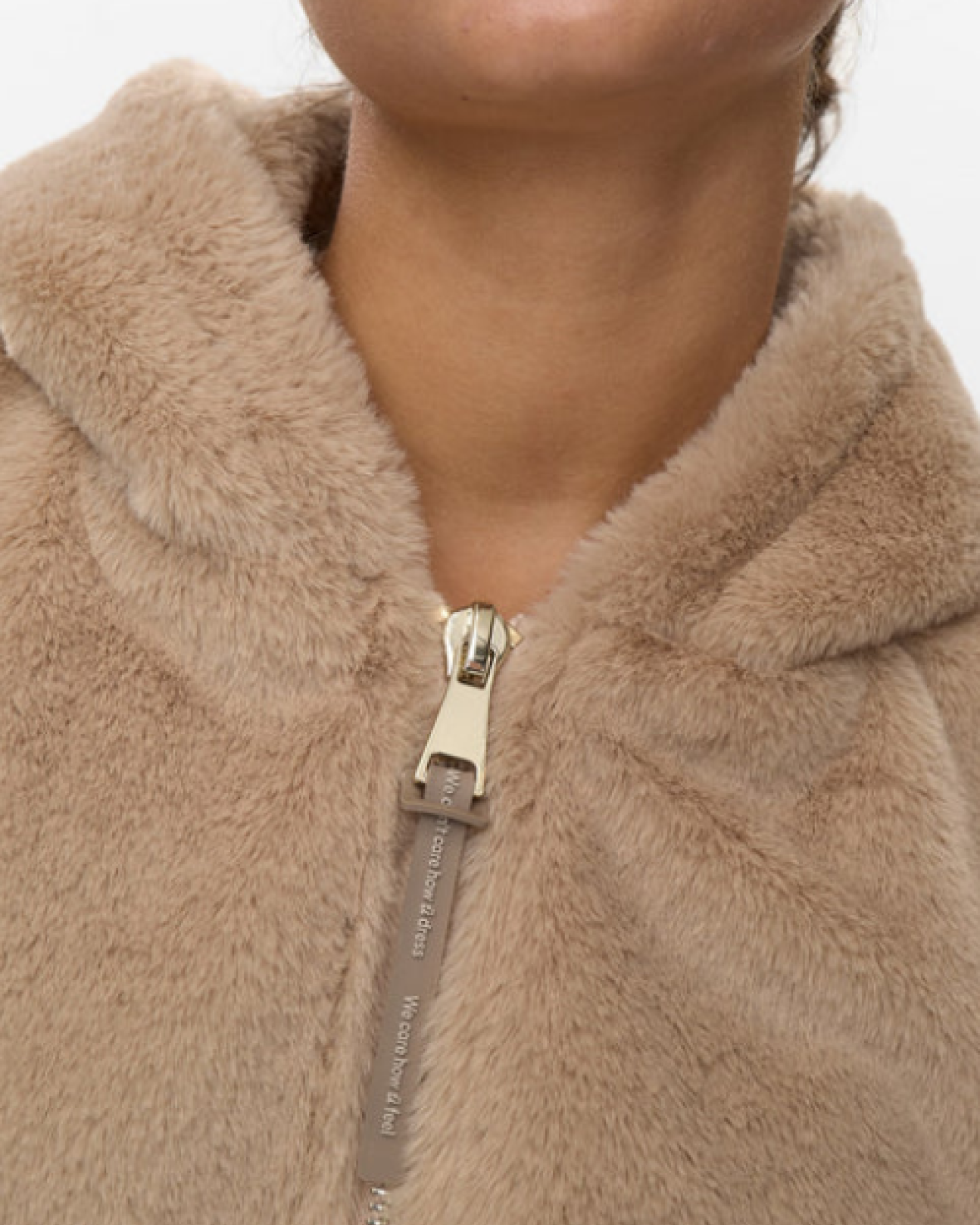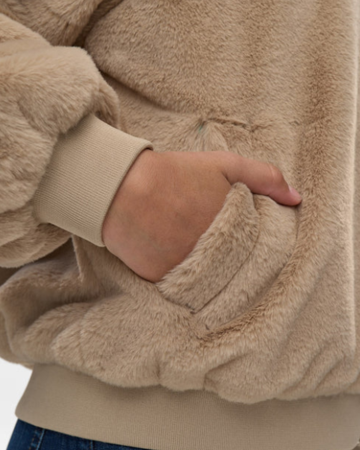NUMOURIS JACKET - NÜMPH Pak dig ind i blød elegance med denne jakke er fremstillet af ultrablød kunstpels i en tidløs taupegrå farve og kombinerer hyggelig komfort med elegant stil. Uanset om du skal ud på en frisk efterårstur eller tager lag på for et elegant vinterlook, er denne jakke din favorit til varme og elegance.