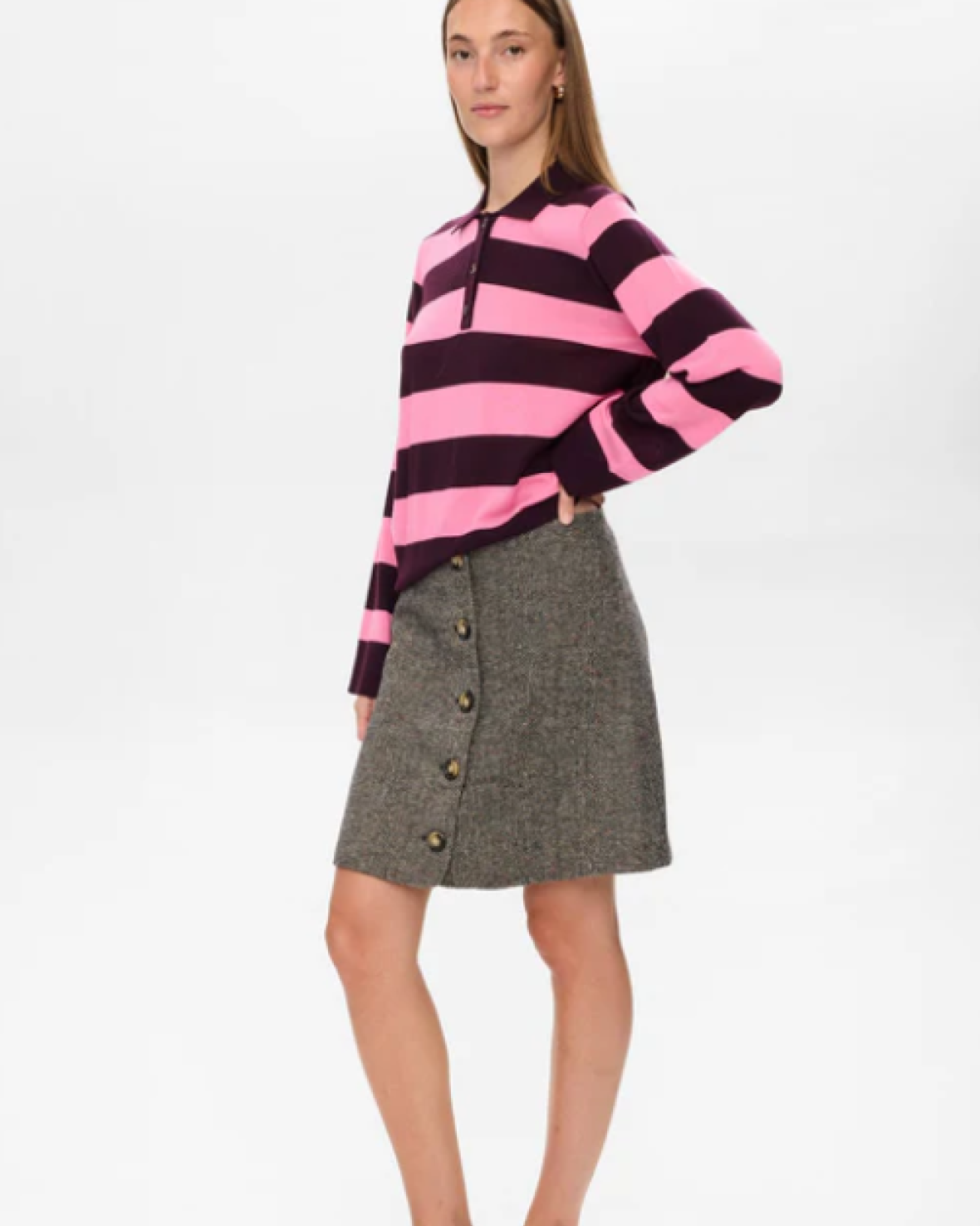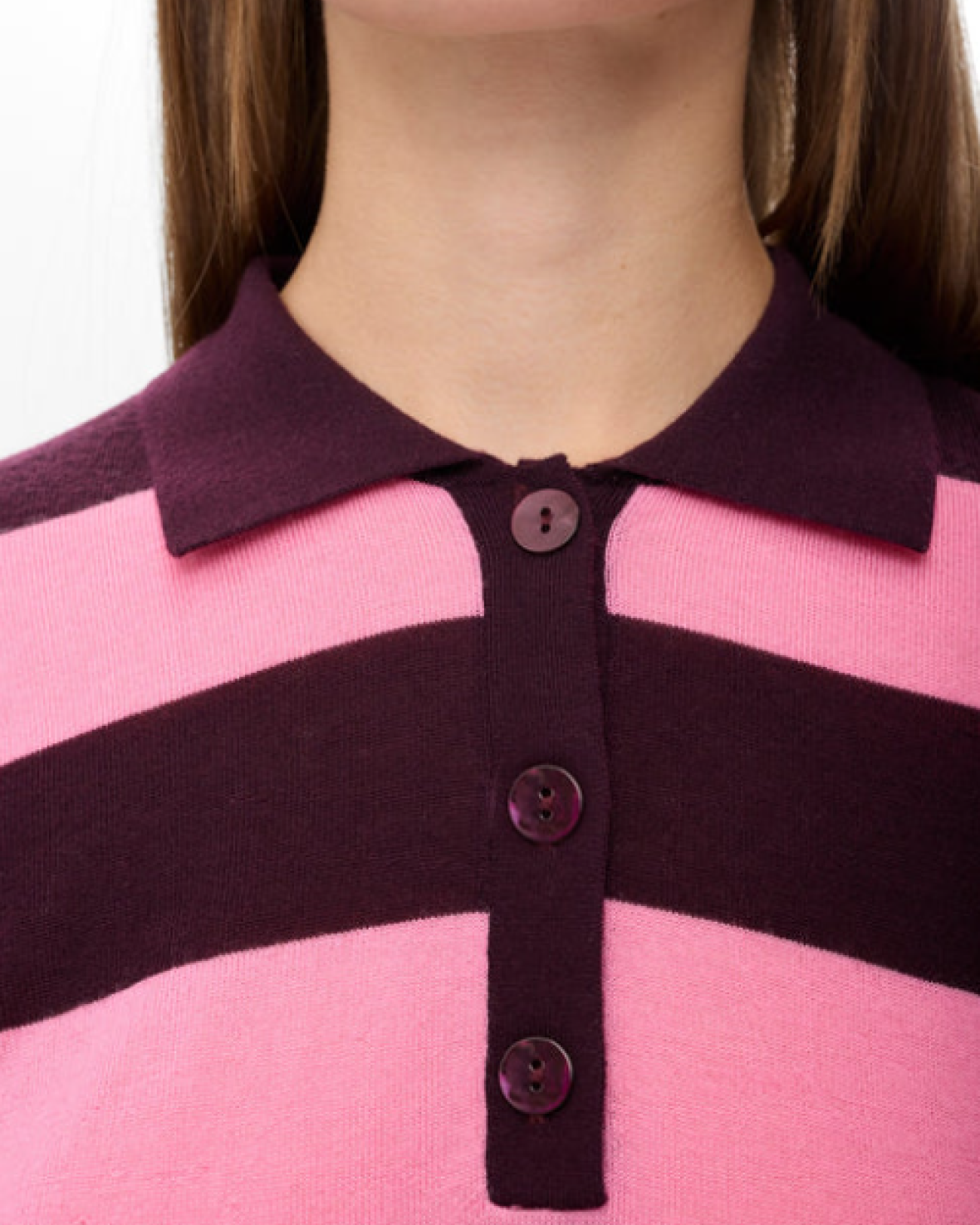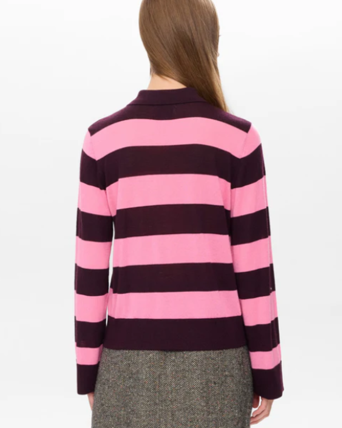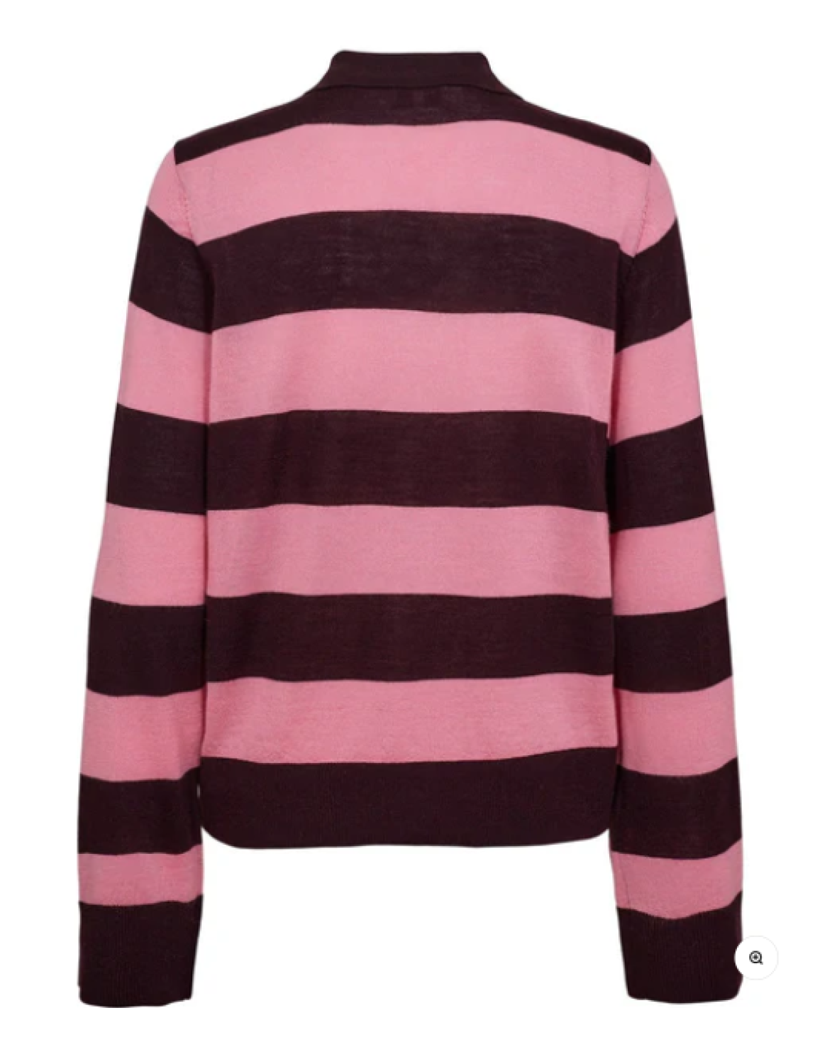 NUCHIA POLO - NÜMPH er en eksklusiv og feminin polo med et klassisk snit og et moderne twist. Den fine ribstruktur og den smalle pasform giver et tidløst udtryk også er den er strikket i 100 % merinould, som gør den både temperaturregulerende, blød og let mod huden. Perfekt til lag-på-lag eller som enkel statement over jeans, nederdele eller pæne bukser.