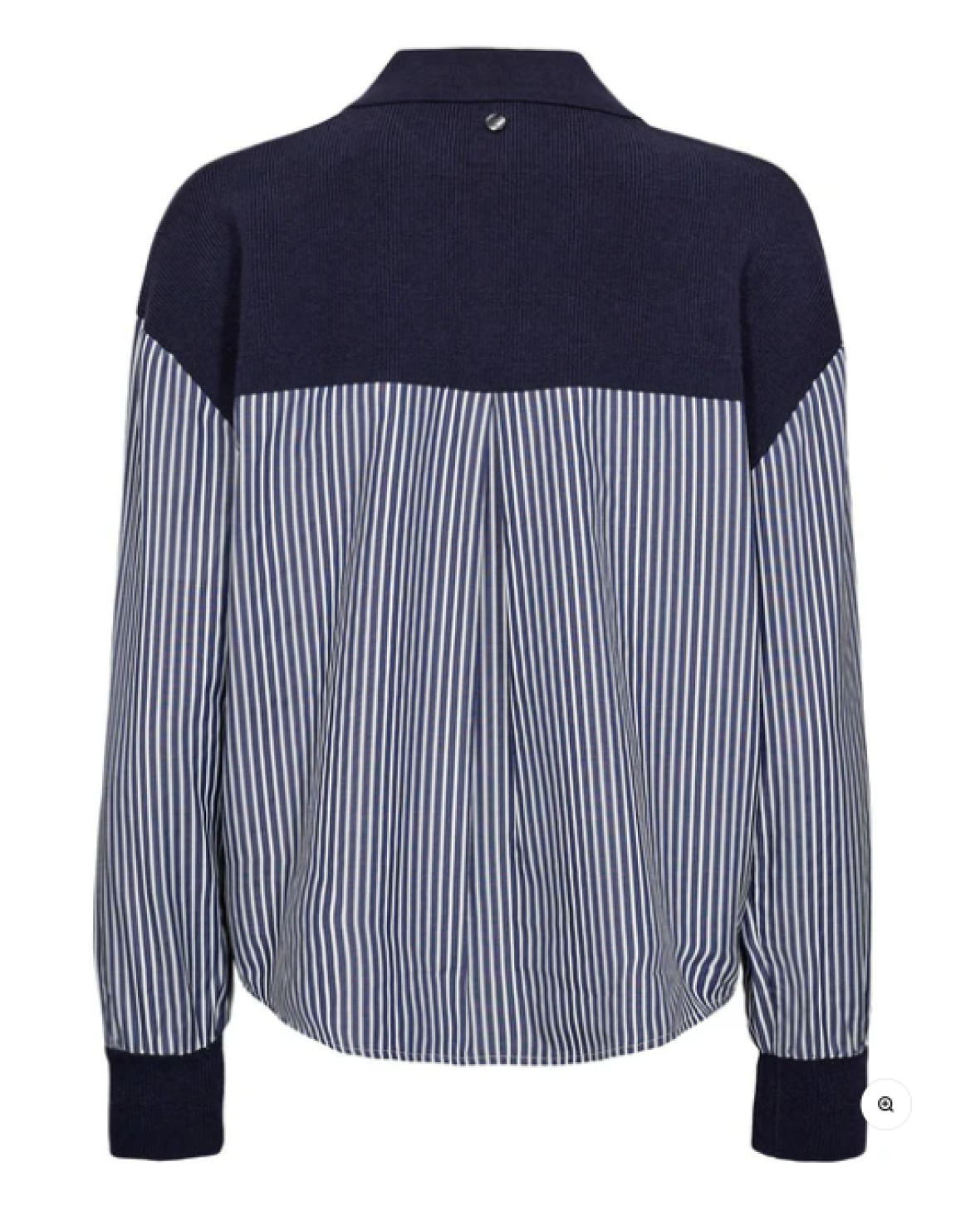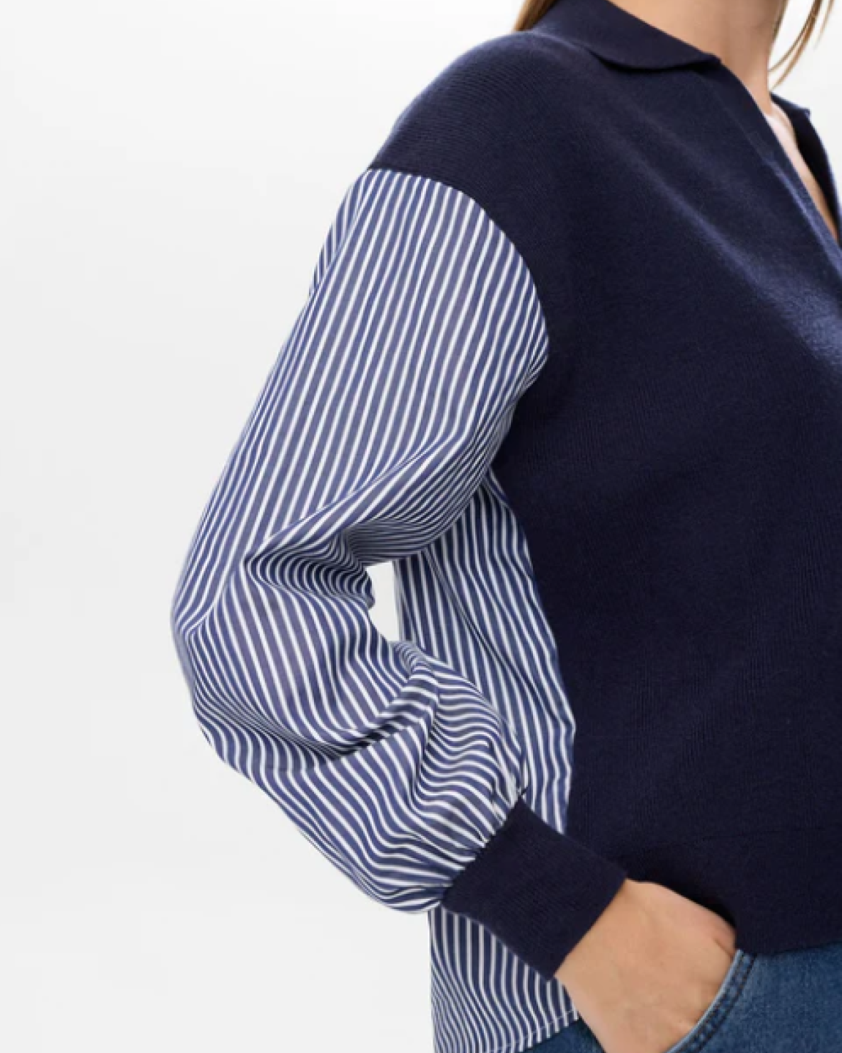 NUMARSY PULLOVER - NÜMPH Elegant og alsidig pullover i dyb mørkeblå. Designet med V-udskæring og en behagelig pasform, der gør den nem at style til både hverdag og arbejde. Fremstillet i en blød og holdbar materialeblanding, der sikrer komfort hele dagen.Kvalitet:100% Polyester, 19% Polyester, 35% Viskose, 46% Polyamid