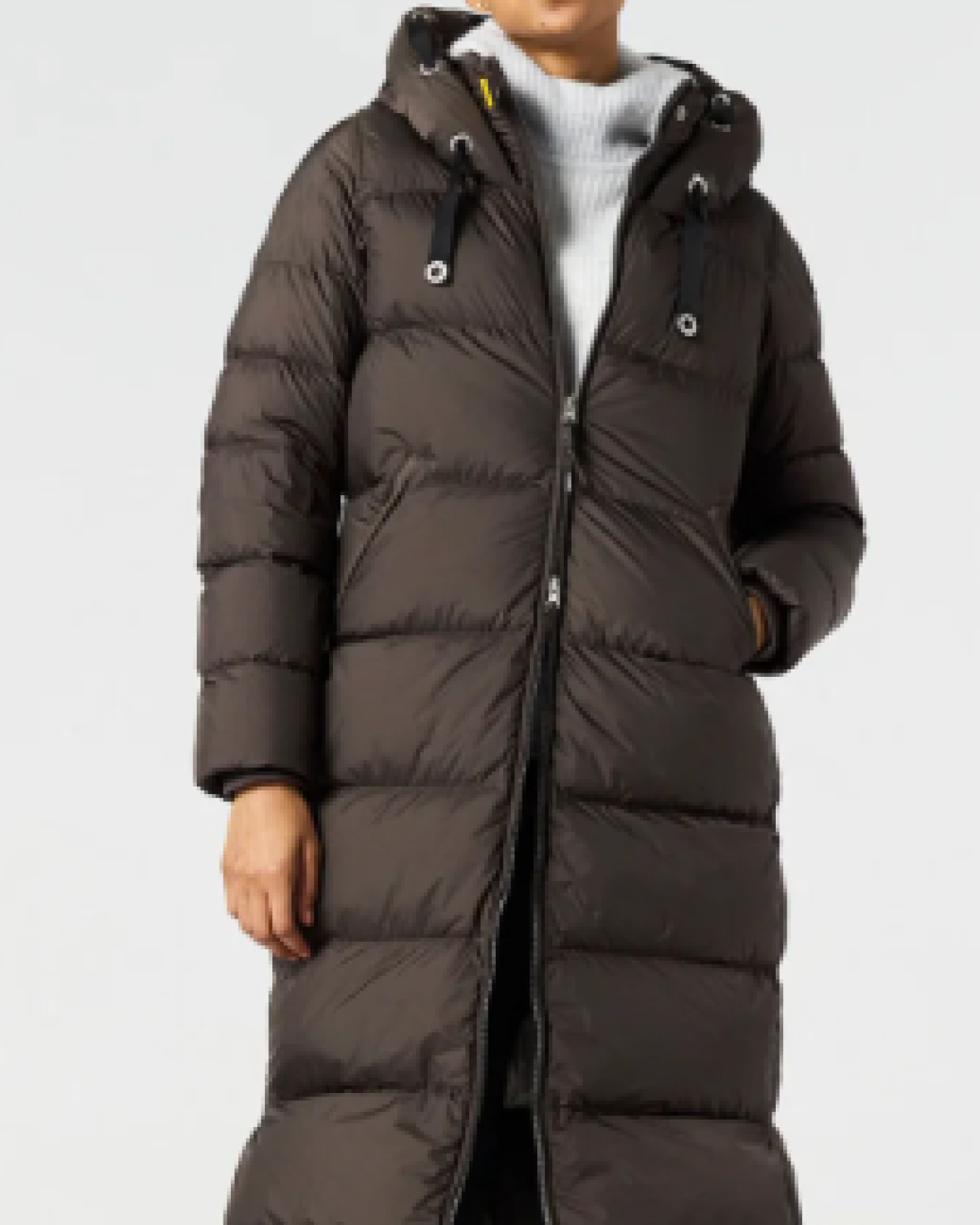 PANDA JAKKE - P.J.S er en esksklusiv dunfrakke med hætte, som er justerbar ved hjælp af et bånd. Fantastisk flot sort farve. Frakken er vind- samt vandafvisende, den er ikke vandtæt, desuden er den med store lameller og flotte bånd ved hætte og bunden. Jakken er med to lommer udenpå og to meshlommer på indersiden giver rigelig plads til opbevaring. Elastik ved håndved og justerbar bund.
