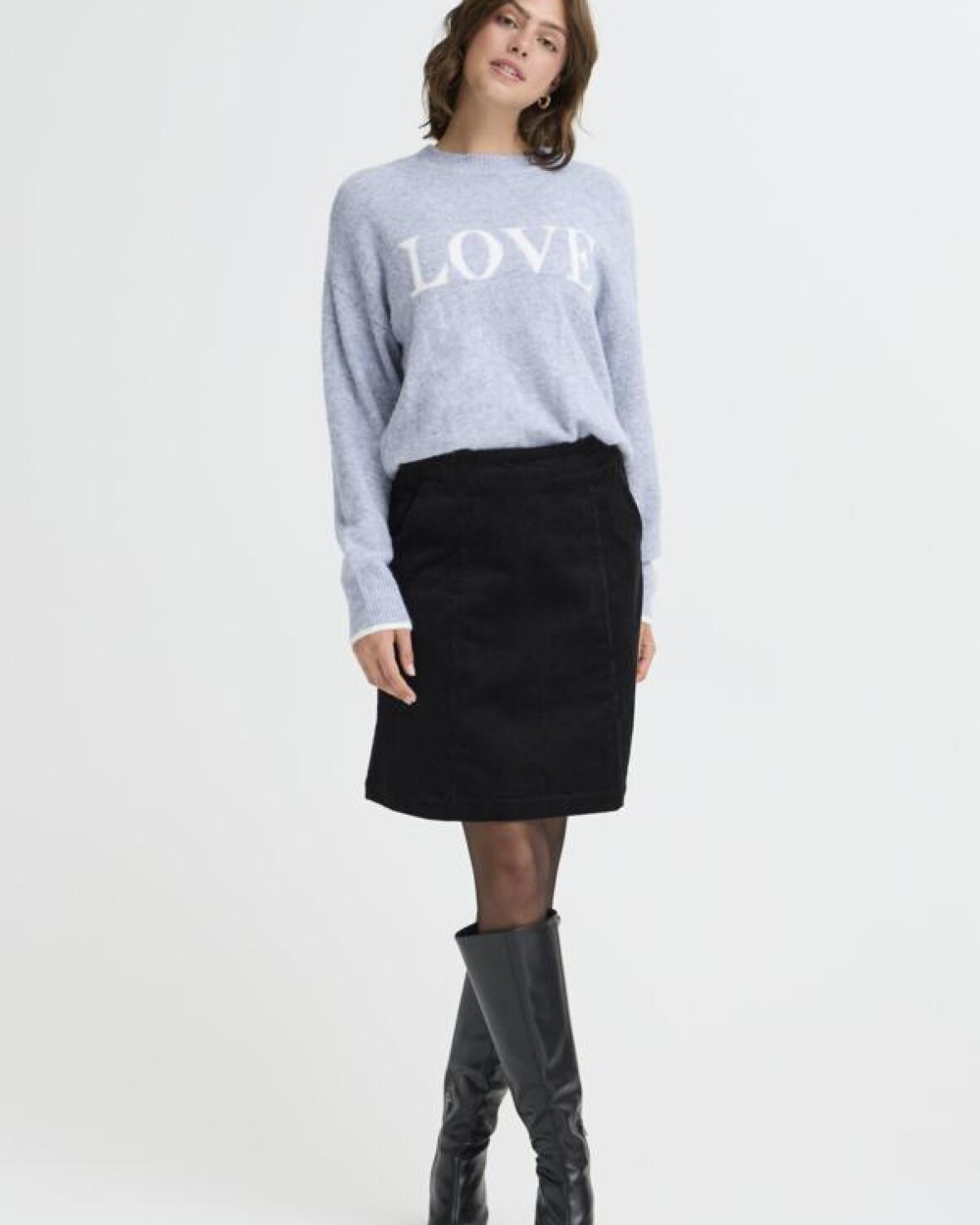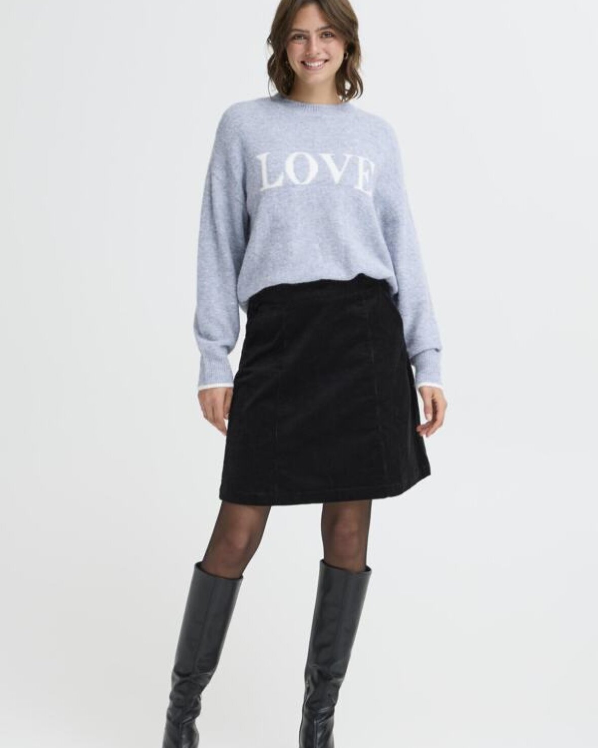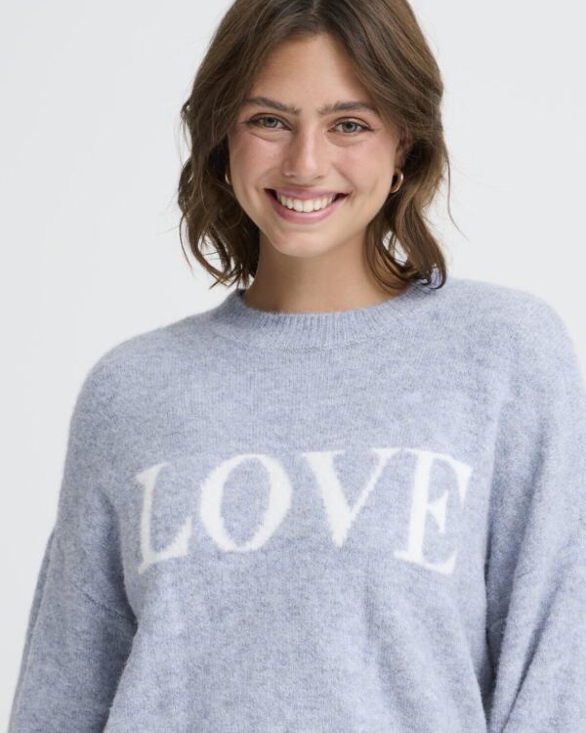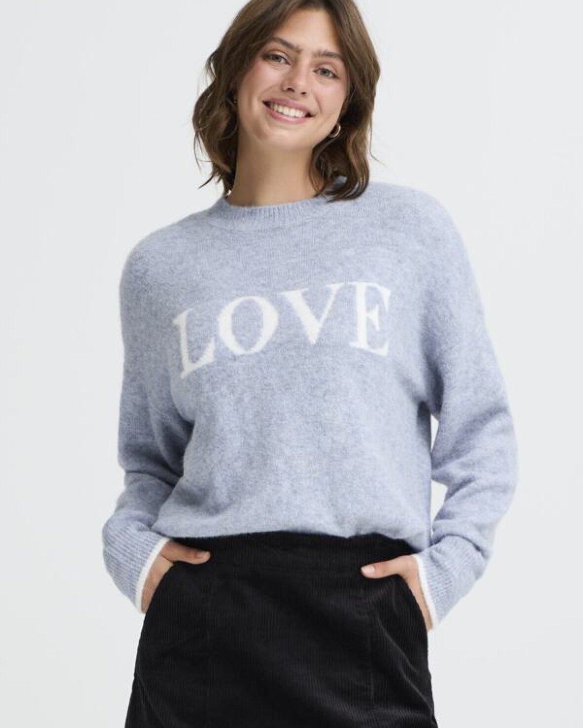 FRFLORENCE PULLOVER 1 - FRANSA denne pullover har afslappet pasform, rund halsudskæring og lange ærmer. Blød strik og tekst foran gør den oplagt til både arbejde og fritid.