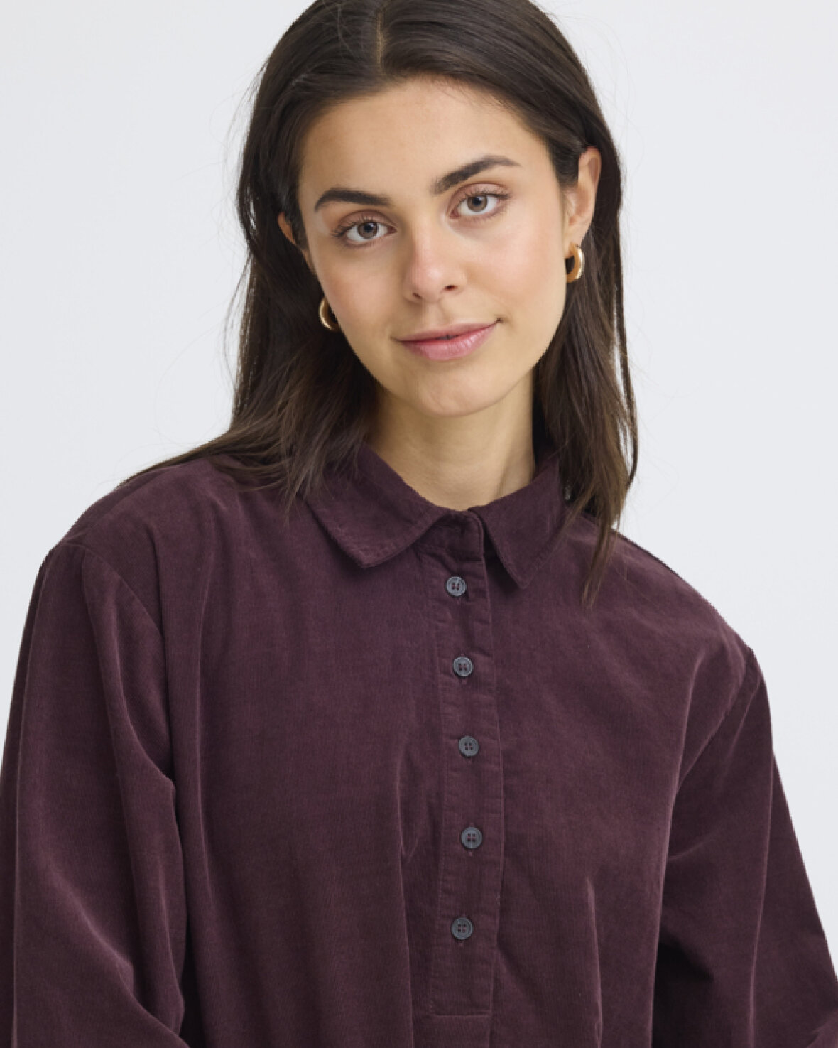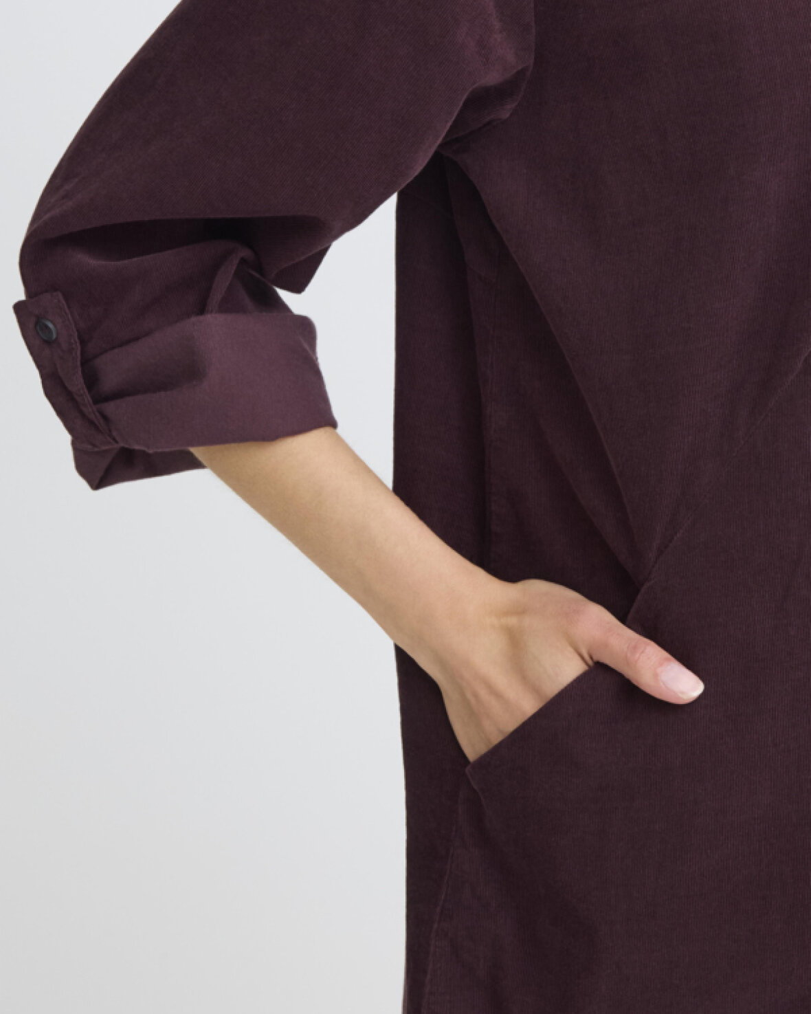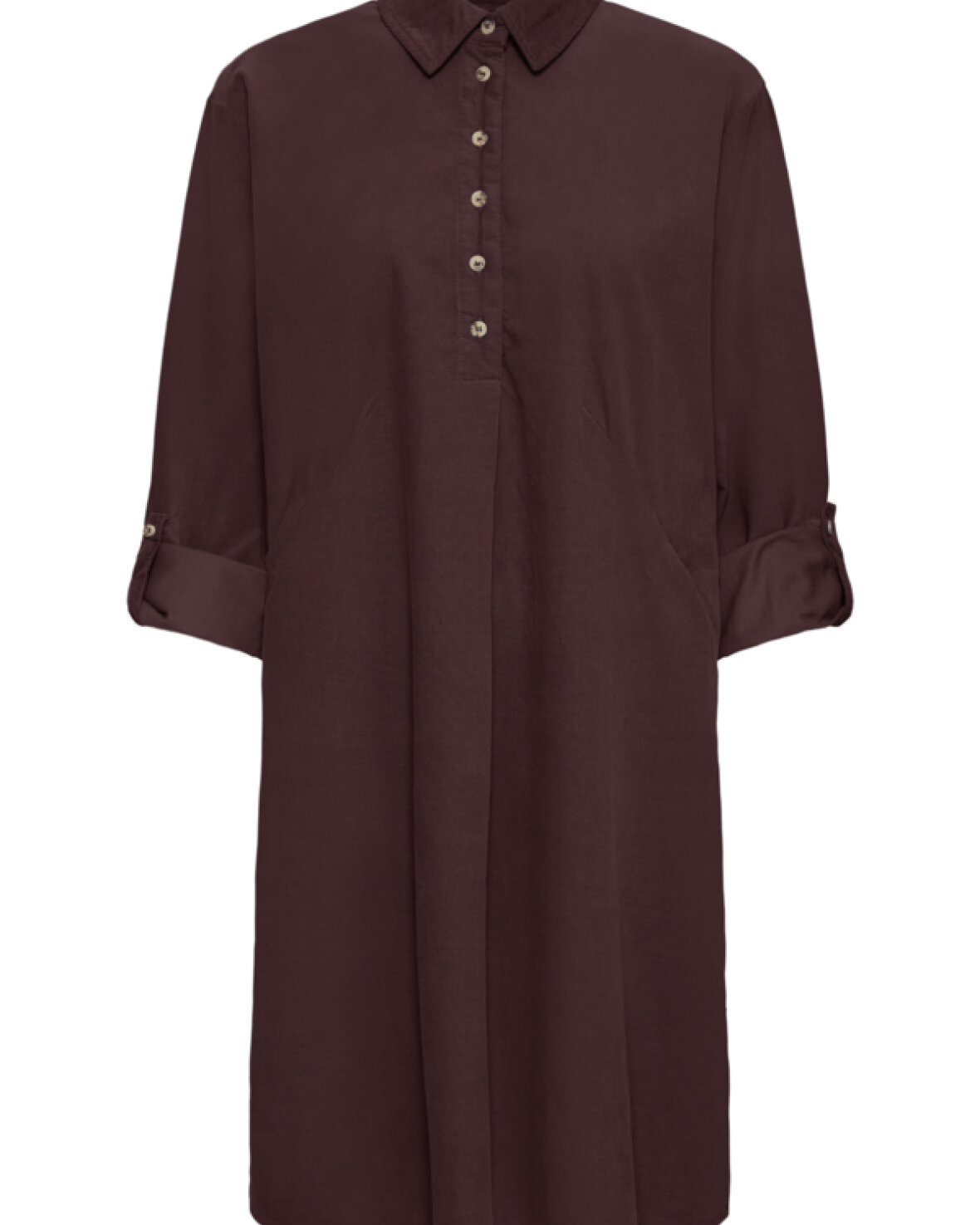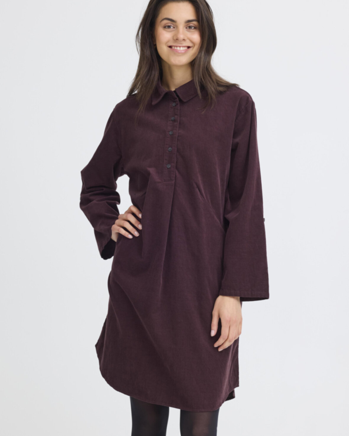 FRCORY KJOLE 2 - FRANSA er en smart skjortekjole med afslappet pasform og klassisk krave. Lange ærmer med manchetter og knaplukning. Komfortabel knælang model til mange anledninger.