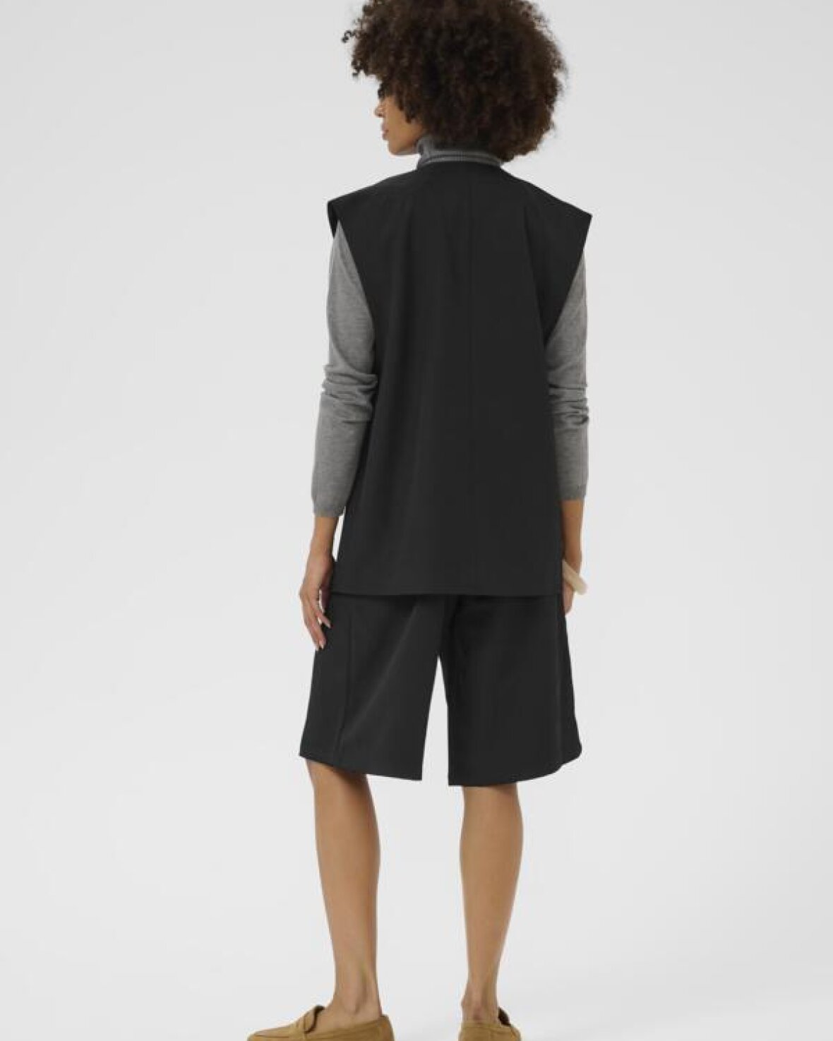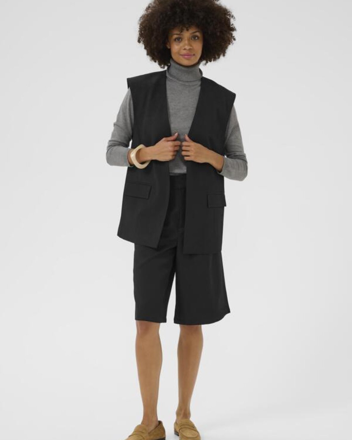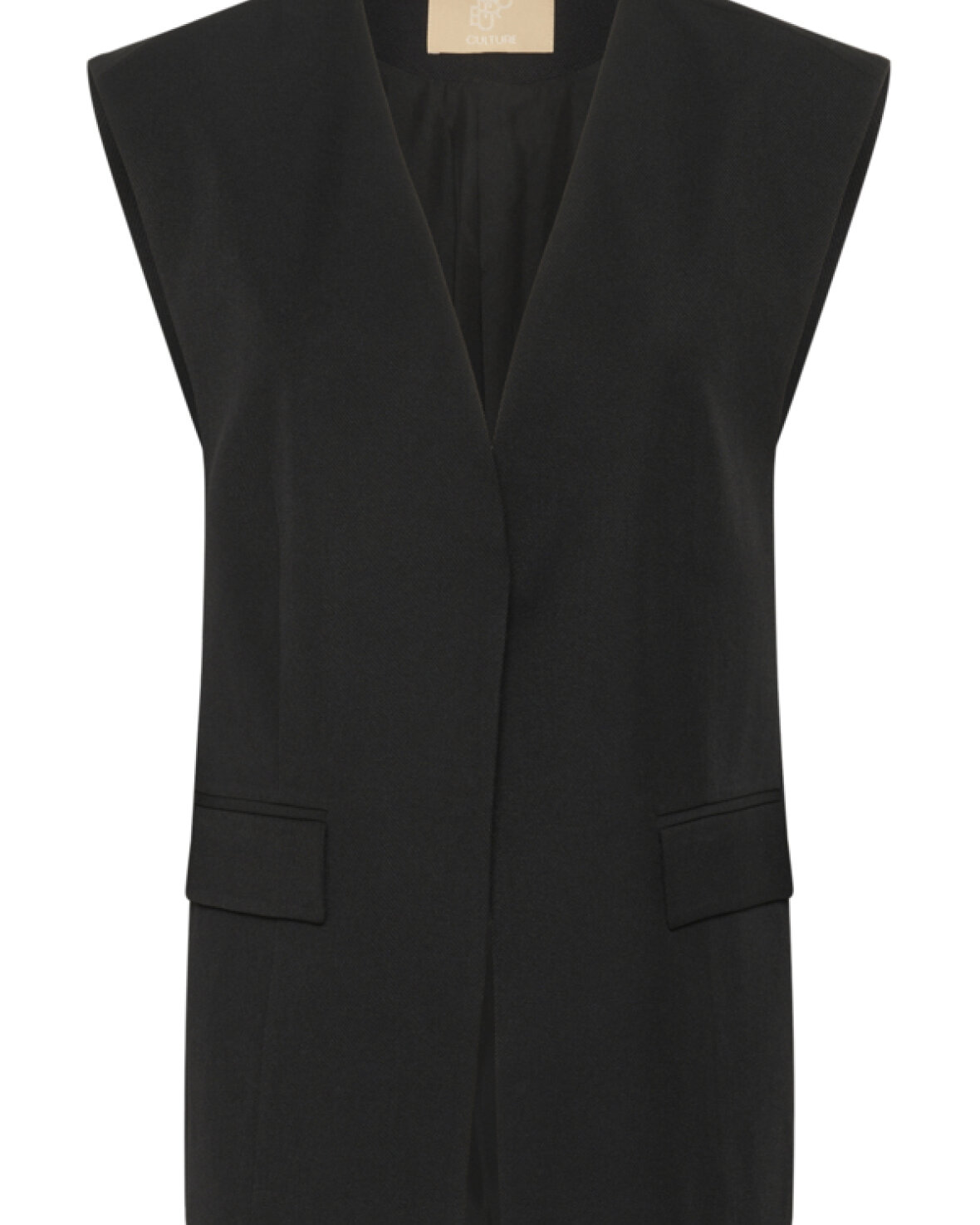 CUBENEDICHTE WAISTCOAT - CULTURE er et elegant lag-på-lag-item, der tilføjer struktur og karakter til ethvert outfit. Den er designet i en ren og tidløs silhuet med rette linjer, som giver et moderne og sofistikeret udtryk. Vesten har en funktionel knaplukning foran og diskrete detaljer, der understreger det minimalistiske design uden at tage fokus fra resten af looket. Vesten er nem at kombinere med både skjorter, bluser og lette strikvarer og fungerer perfekt som et ekstra lag i overgangssæsonerne.
