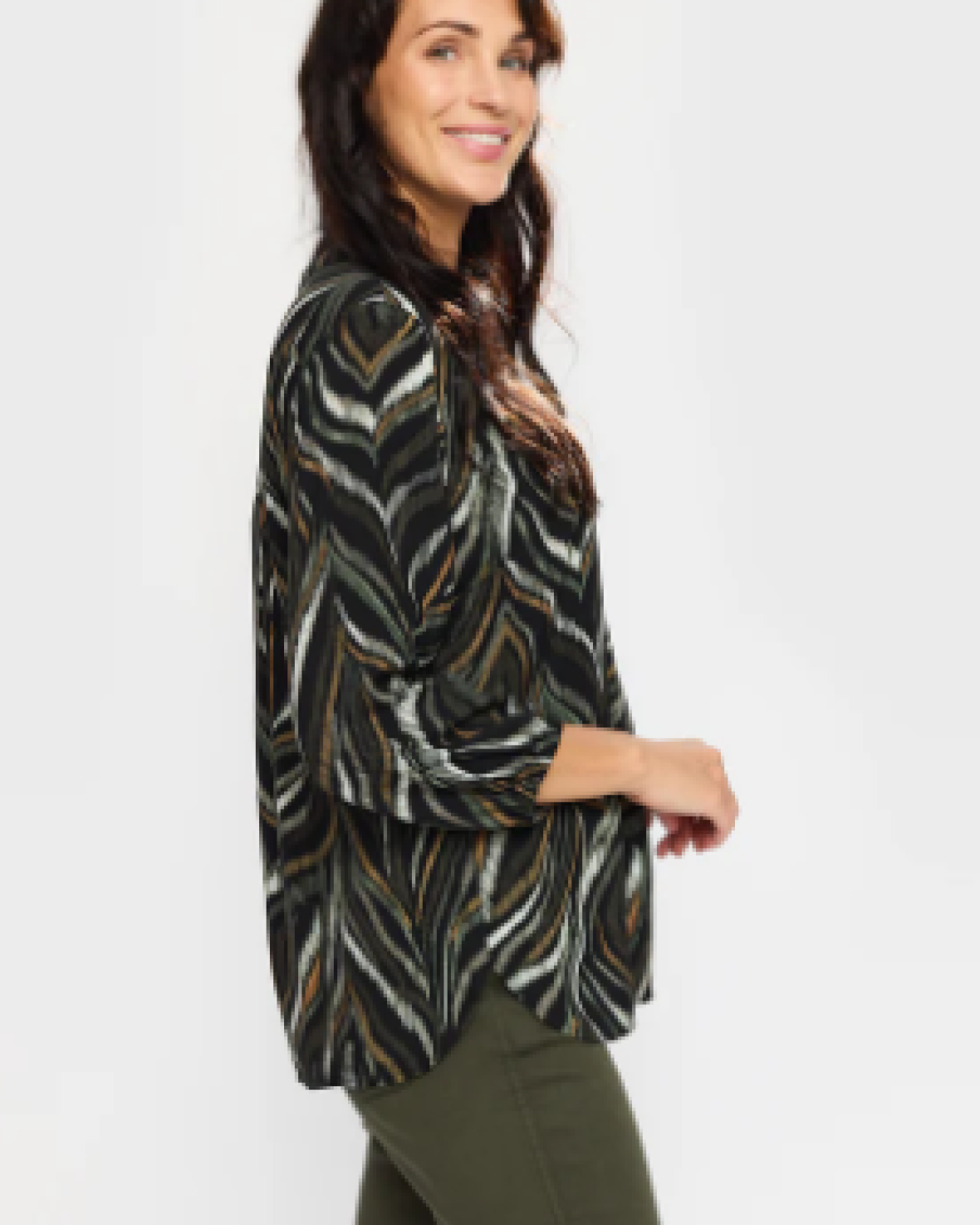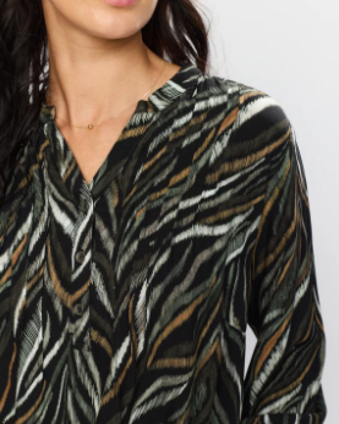 DORTE BLUSE - 2-BIZ er en sød bluse med trekvartærmer og elastik der har en v-udskæring med knaplukning. Den har flæser hen også brystet, som giver et flot spil i blusen.