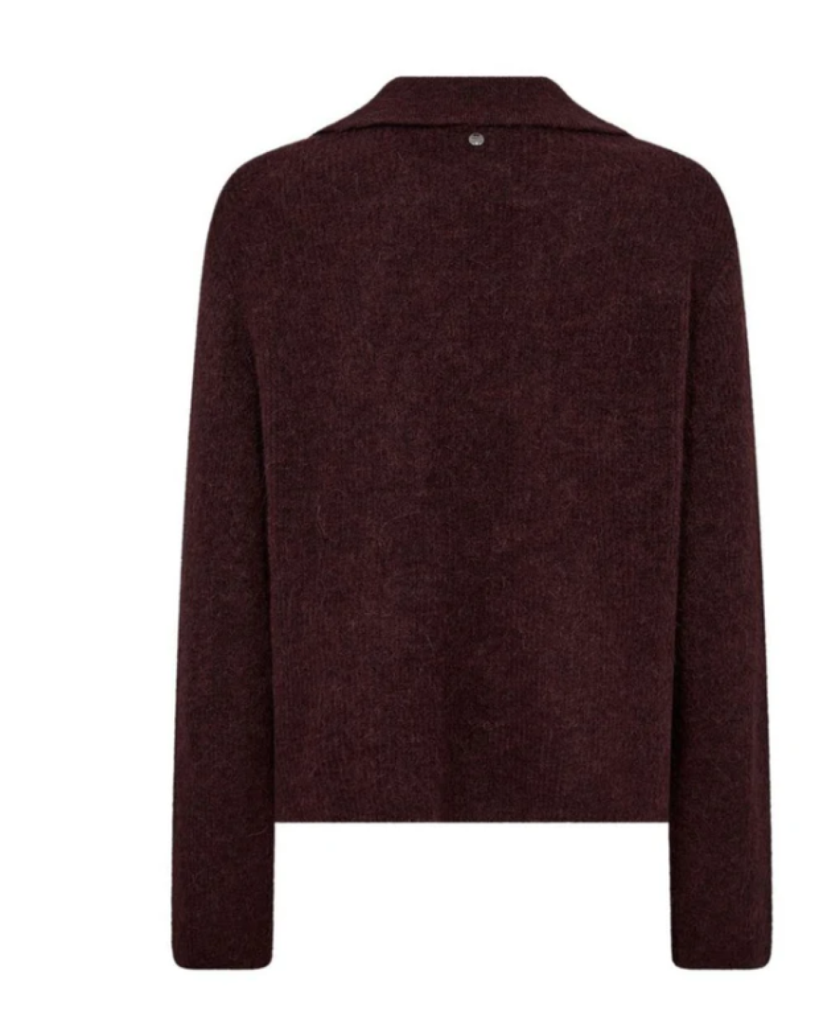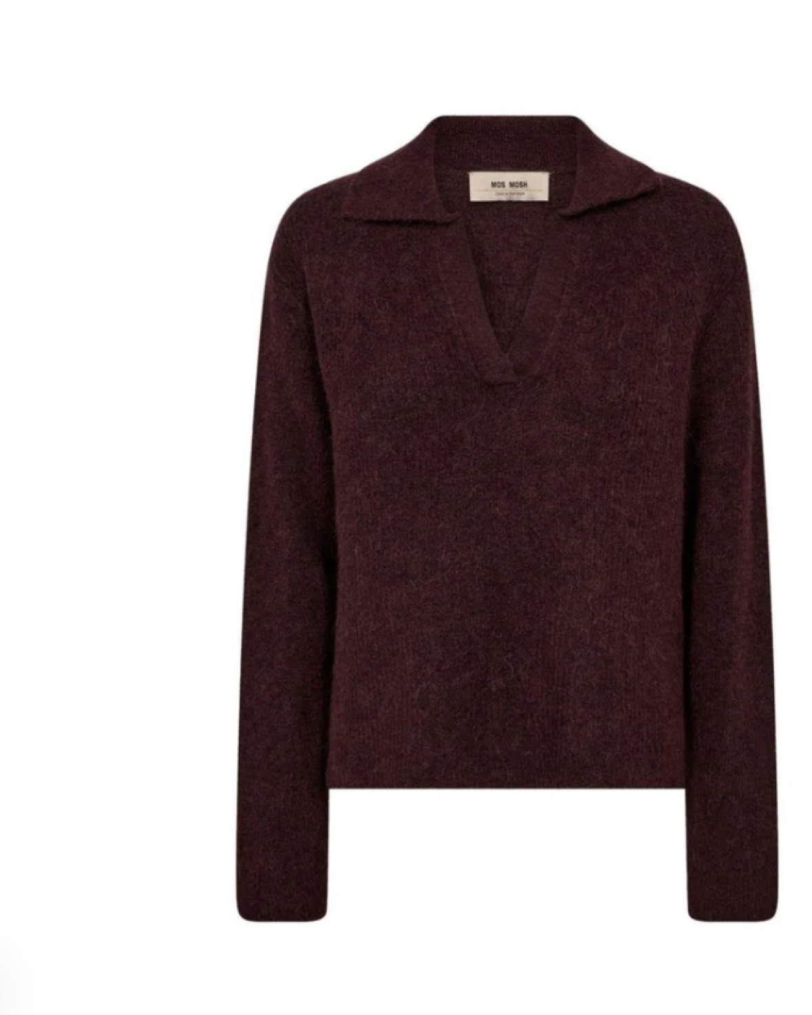 MMTHORA AIDY POLO KNIT - MOS MOSH denne bløde polostrik er fremstillet af en blanding af uld og alpaka, der sikrer både komfort og luksus. Designet i en let løs pasform, har den en klassisk V-hals og en krave, hvilket giver et tidløst, men afslappet look. Perfekt til lag-på-lag-styling – brug den over en skjorte, kjole eller skræddersyede bukser for et ubesværet chic arbejdslook.
