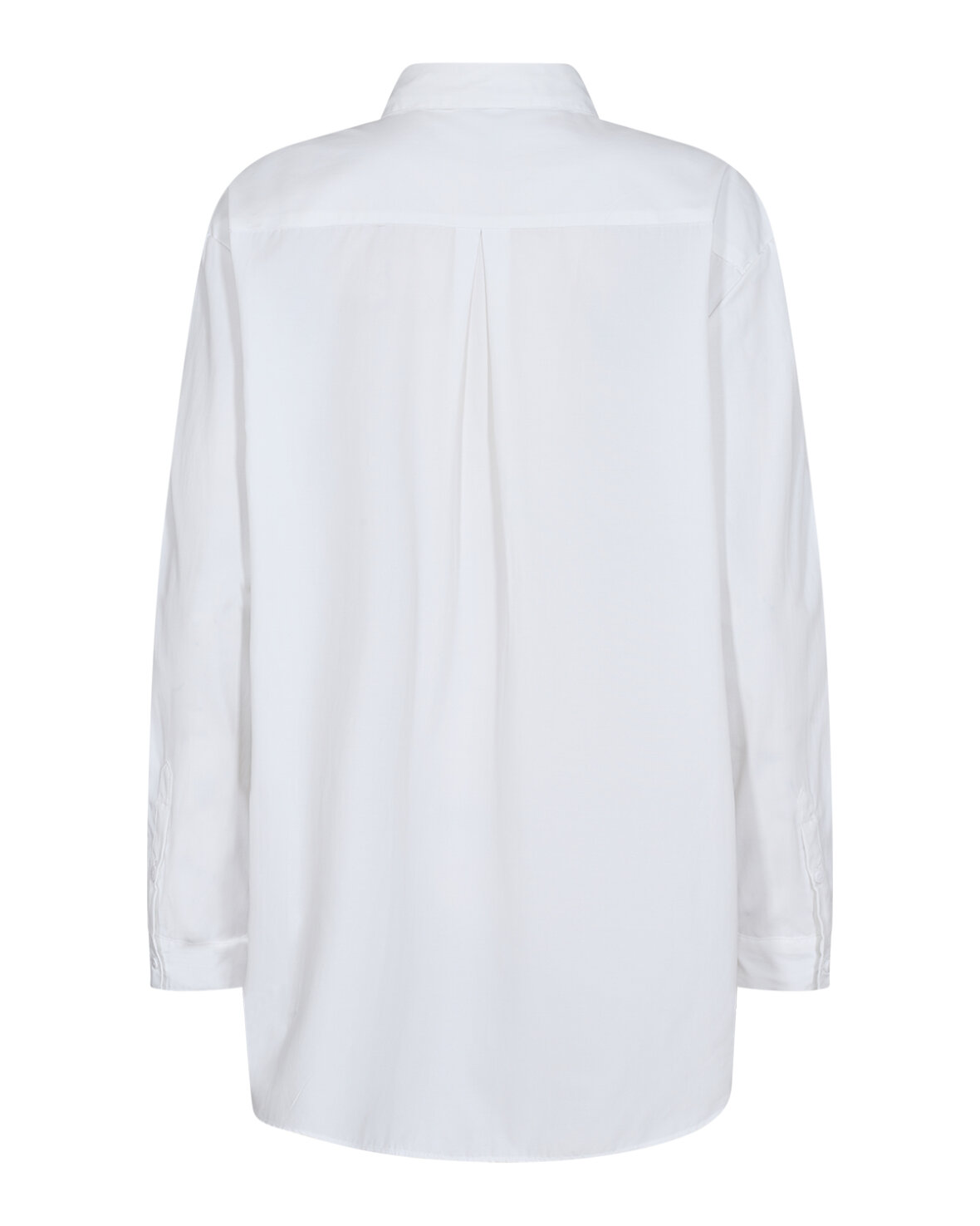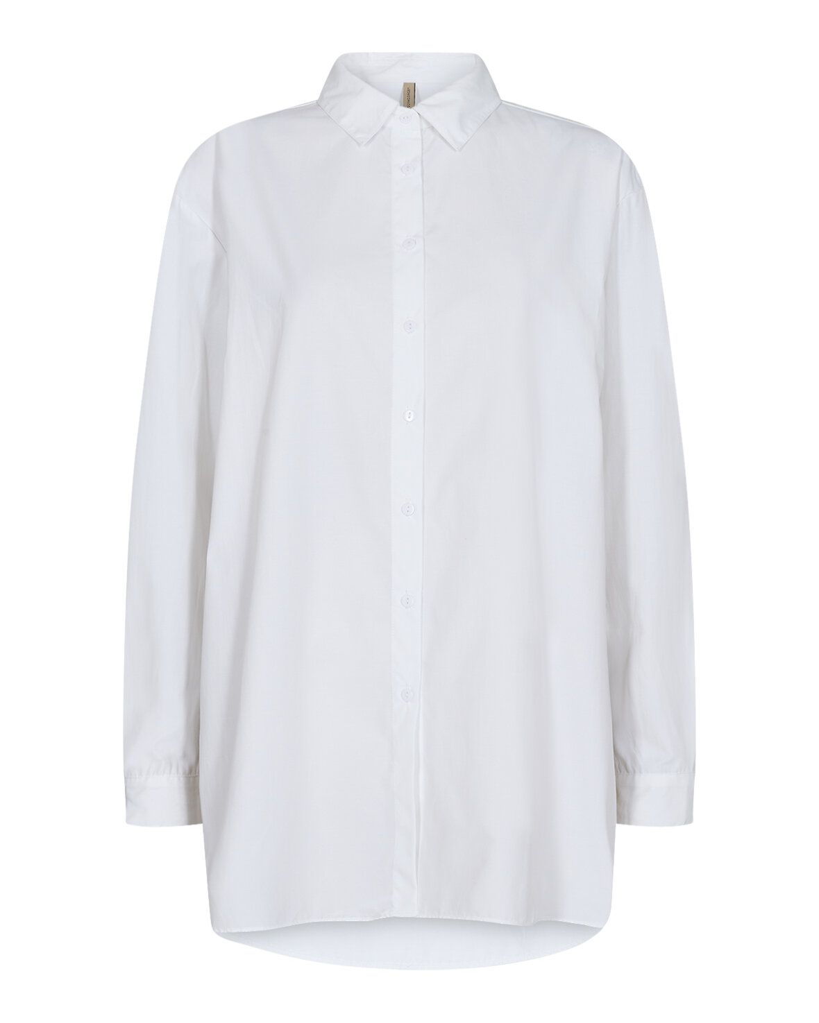SC-NETTI 52 SHIRT - SOYA er en klassisk oversized skjorte. Denne skønne skjorte har en klassisk skjortekrave, en knaplukning, lange ærmer og en oversized pasform. Style denne klassiske skjorte med et par straight fit jeans og nogle sneakers for et afslappet, men klassisk look.Kvalitet: 53% Genanvendt Polyester, 47% Økologisk bomuld