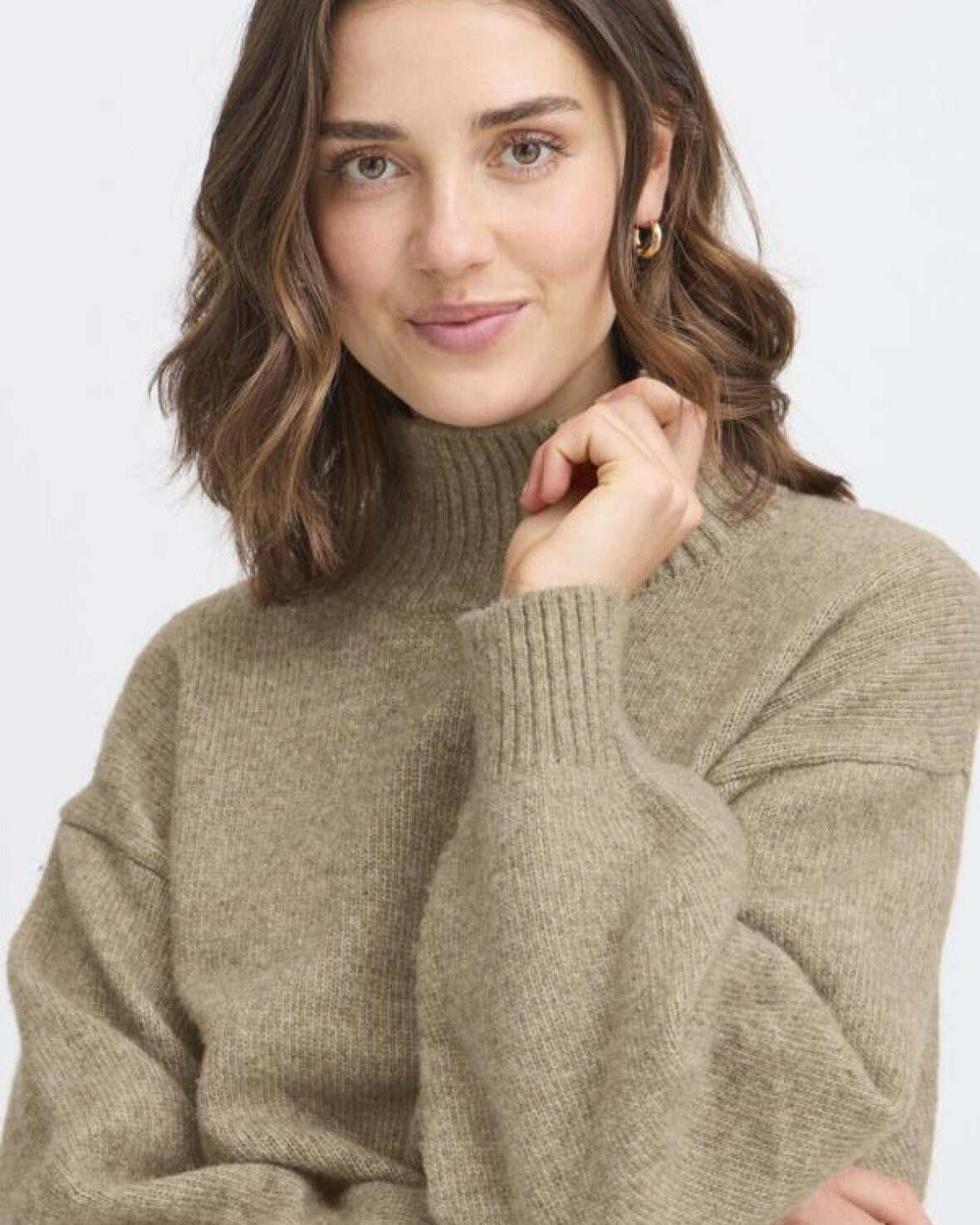 FRGIGI PULLOVER 1 - FRANSA denne striktrøje til kvinder har afslappet pasform og moderne silhuet. Ribkanter ved hals, ærmer og bund giver ekstra komfort og stil. Perfekt til lag-på-lag i basisgarderoben.Kvalitet: 64% Polyester, 30% Polyacryl, 6% Uld