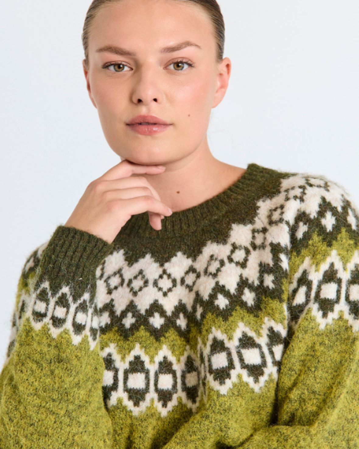 FQNOVALA PULLOVER - FREE/QUENT i en blød, strikket kvalitet. Pulloveren har en løs pasform, brede ribkanter, en rund halsudskæring samt det fineste border mønster.Kvalitet: 79% Polyester, 12% Polyamid, 8% Uld, 1% Elastan