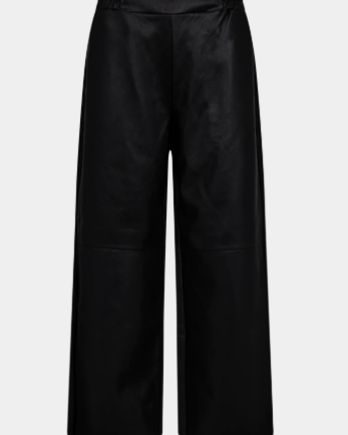 FQVEGGY PANTS - FREE/QUENT er i en lækker kvalitet af imiteret læder. Bukserne er enkle i modellen med vide ben, syningsdetalje på knæerne, for- og baglommer samt elastik i taljen.Kvalitet: 100% Polyurethan