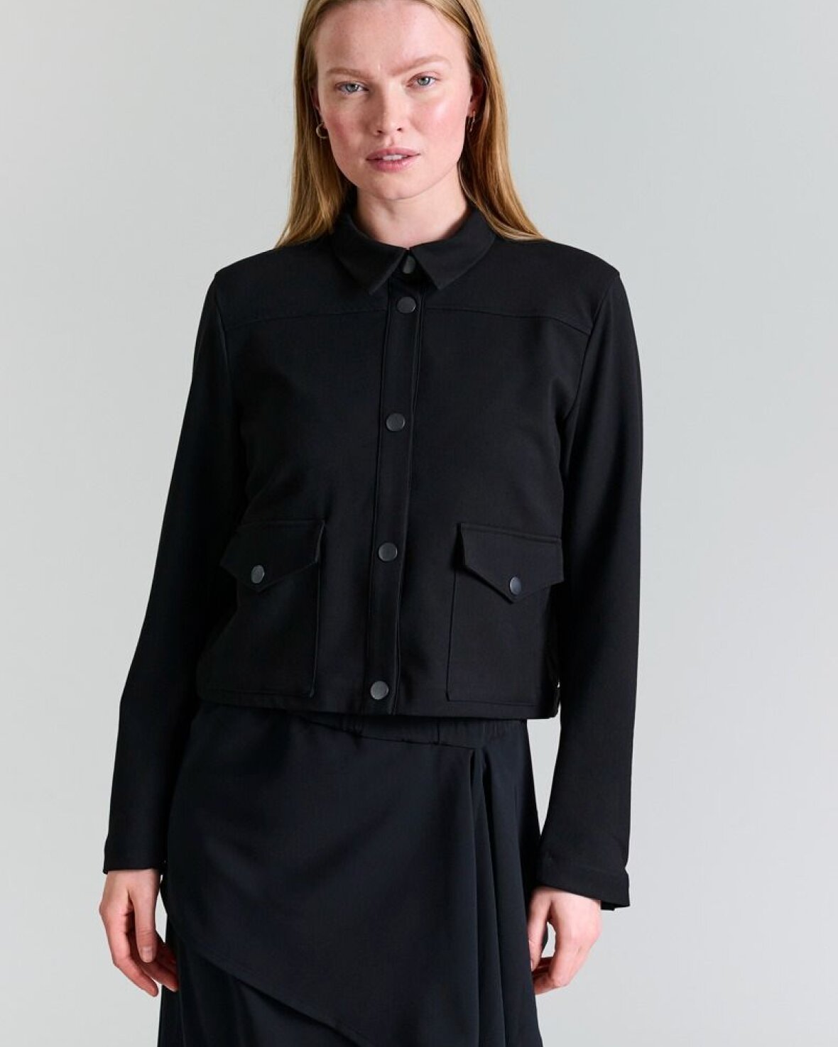 JACKET 14791 - BITTE KAI RAND er en elegant kort jakke med et enkelt og klassisk snit. Jakken kan bruges lukket som en skjorte og åbentstående over en bluse. Kombinerer du jakken med den lige så enkle Noru kjole, får du et sofistikeret og tidløst sæt, der kan bruges til enhver lejlighed.