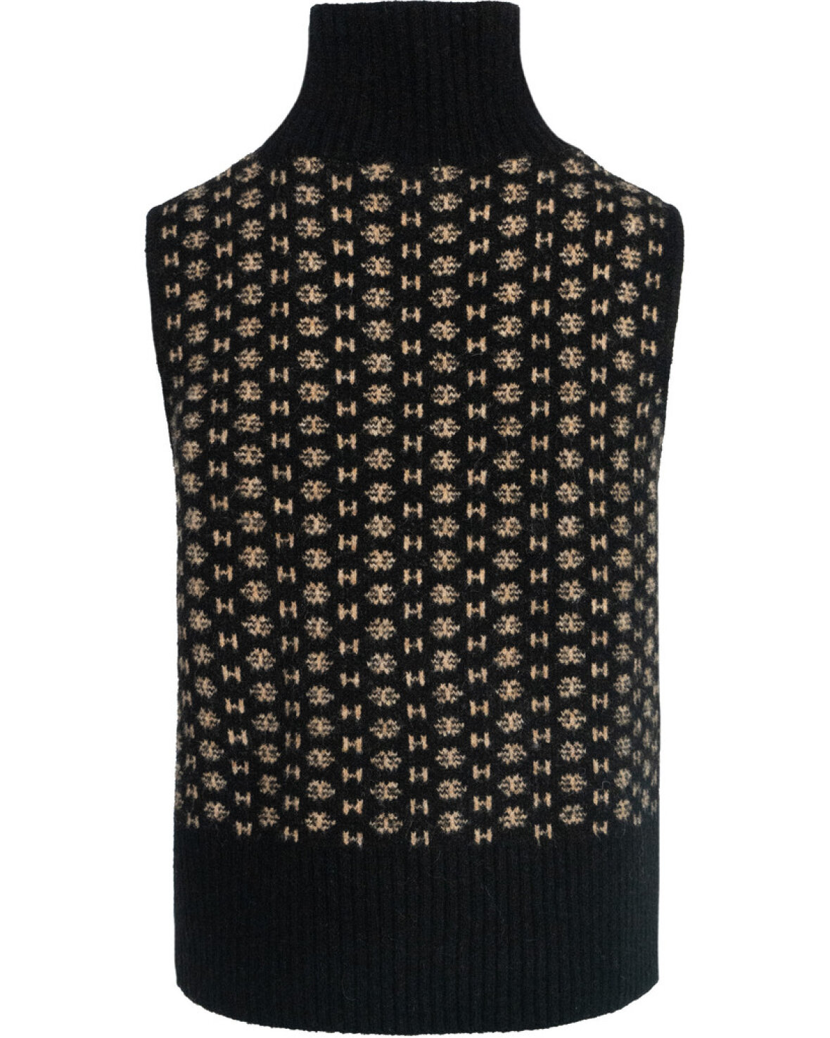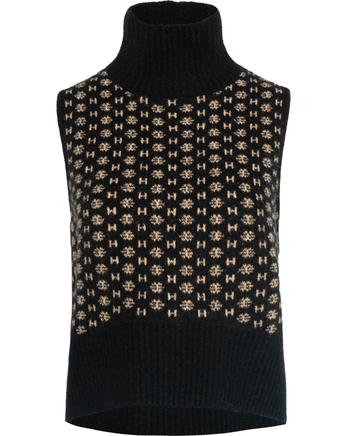 LOGO VEST - HÉST har en høj halsudskæring, forlænget ryg og et detaljeret strikket H-logo. Fremstillet af en blød blanding af kid mohair, merinould og nylon for varme og lethed. Et stilfuldt, forhøjet lag, der giver struktur og karakter til ethvert look.