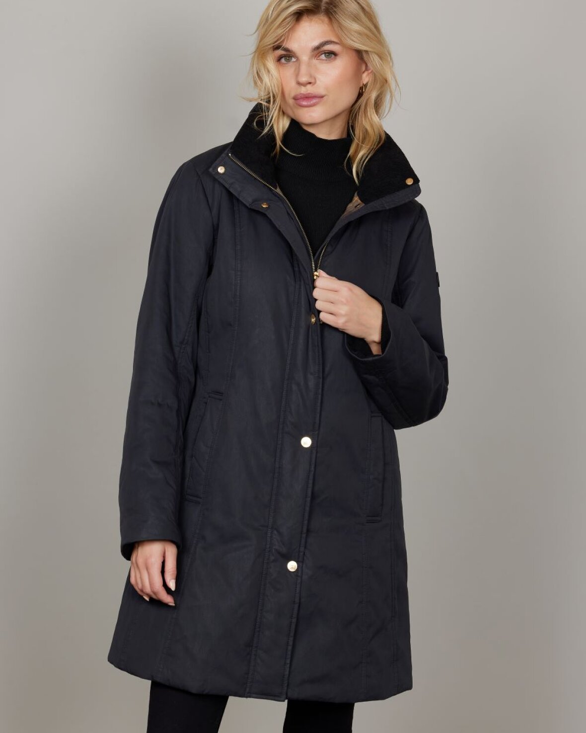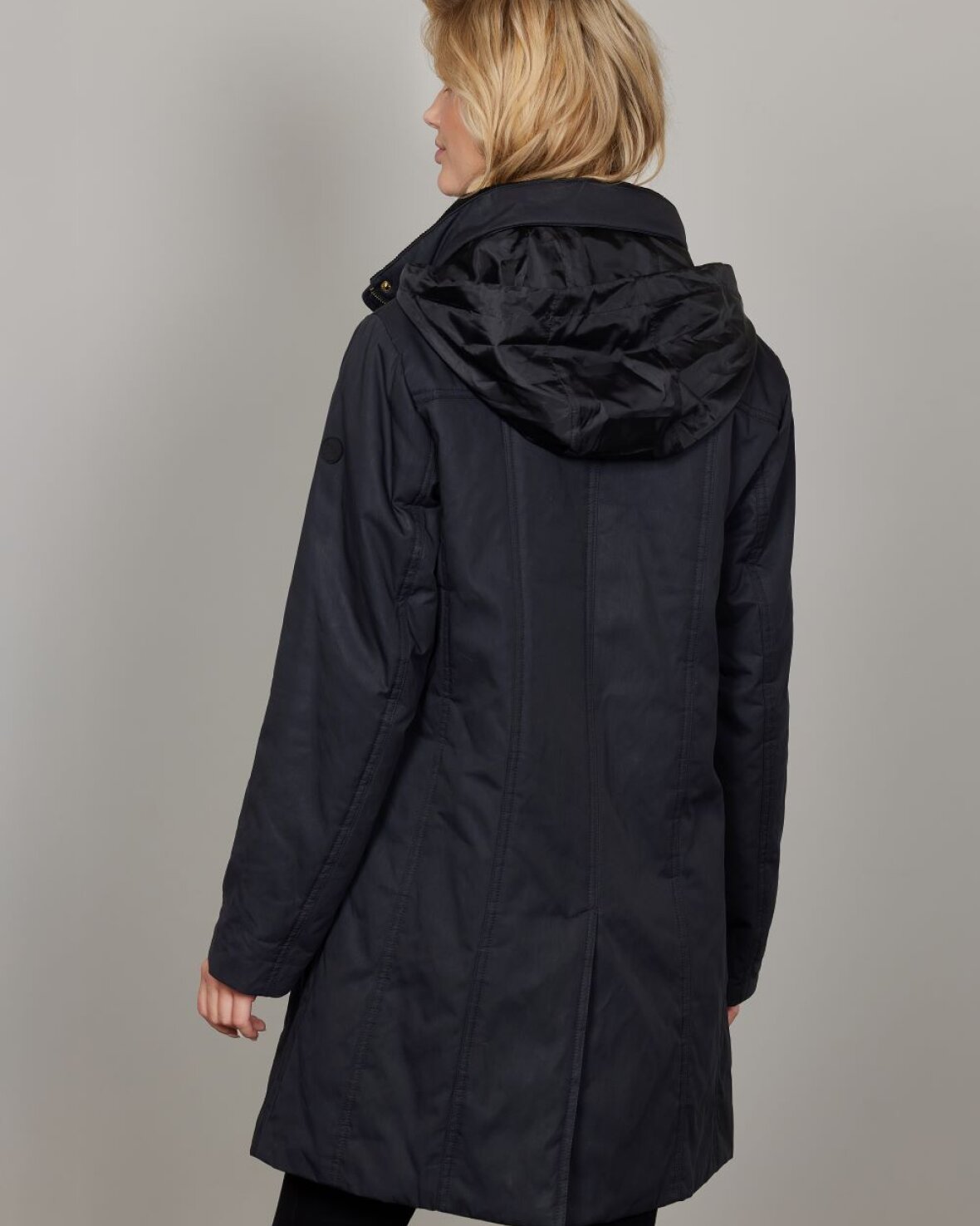 MEGAN JAKKE - JUNGE er en moderne og alsidig jakke fremstillet i en slidstærk bomuldsblanding med voksbelægning, som giver vandafvisende egenskaber og et let råt udtryk. Jakken er gennemtænkt designet med markerede, skræddersyede syninger, der forener et moderne look med praktisk funktionalitet. Den har en aftagelig hætte med klassisk ternet foer, som også ses i den øverste del af kroppen og langs forkanten – et raffineret nik til traditionelt design. Kraven og de indvendige ærmekanter er i blød fløjl, hvilket gør det muligt at rulle ærmerne op for et mere afslappet look. Med lynlås og skjulte trykknapper, paspellommer foret med blødt og varmt stof, samt metaldetaljer i messingfarve, er Megan det perfekte valg til de skiftende årstider – en velbalanceret kombination af stil, komfort og funktion.