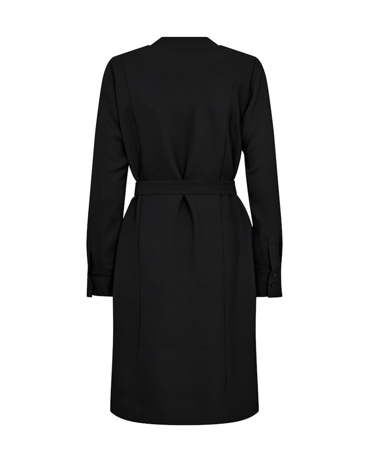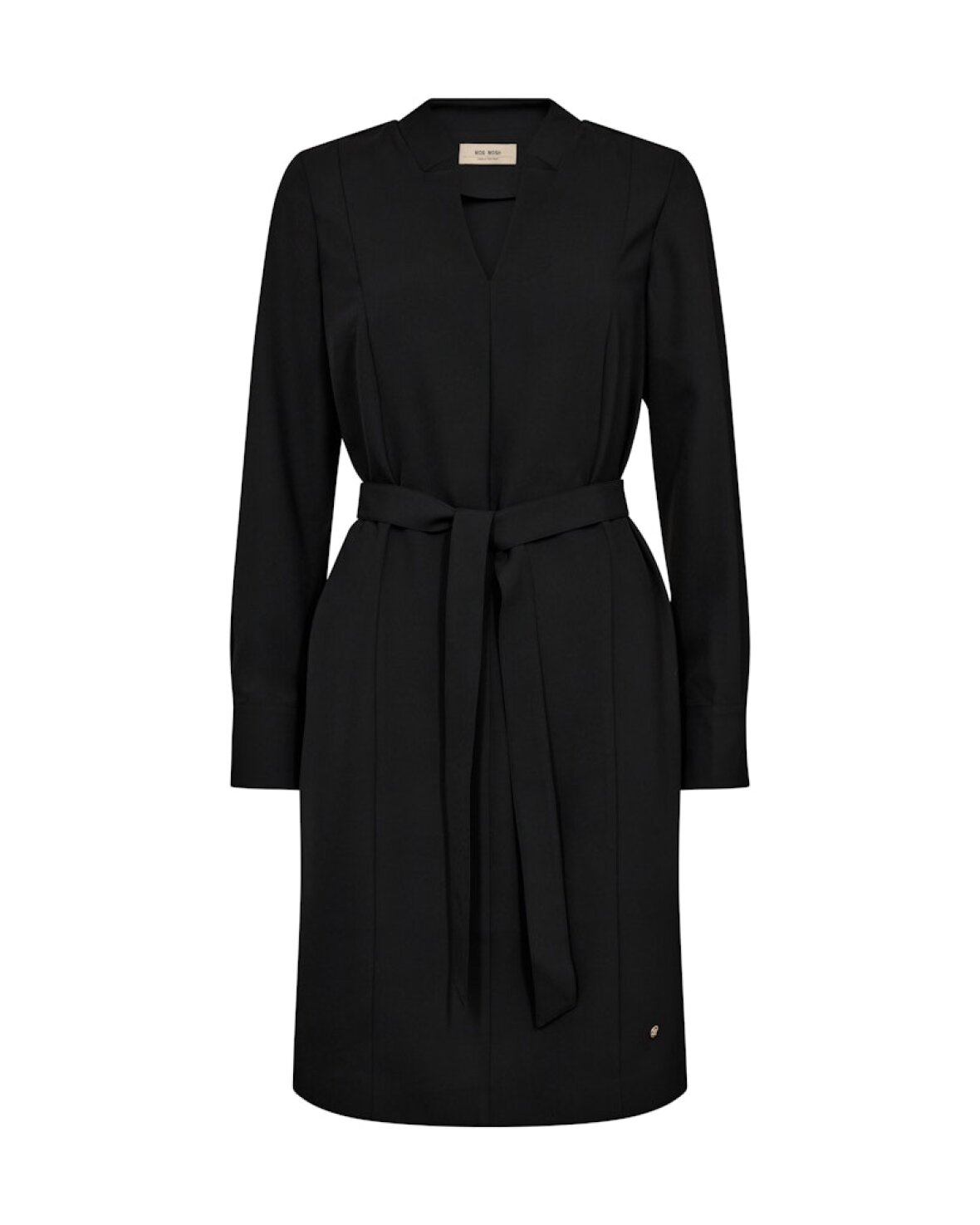 MMLIPI MILEY DRESS - MOS MOSH er en smuk klassisk sorte kjole med lange ærmer, en fin v-udskæring og bindebånd i taljen for at fremhæve dem smukke kvindelige silhouette. Brug den til hverdag med en lækker skindbuks og et par chunky støvler, og til fest med en strømpebuks og en fin hæl.