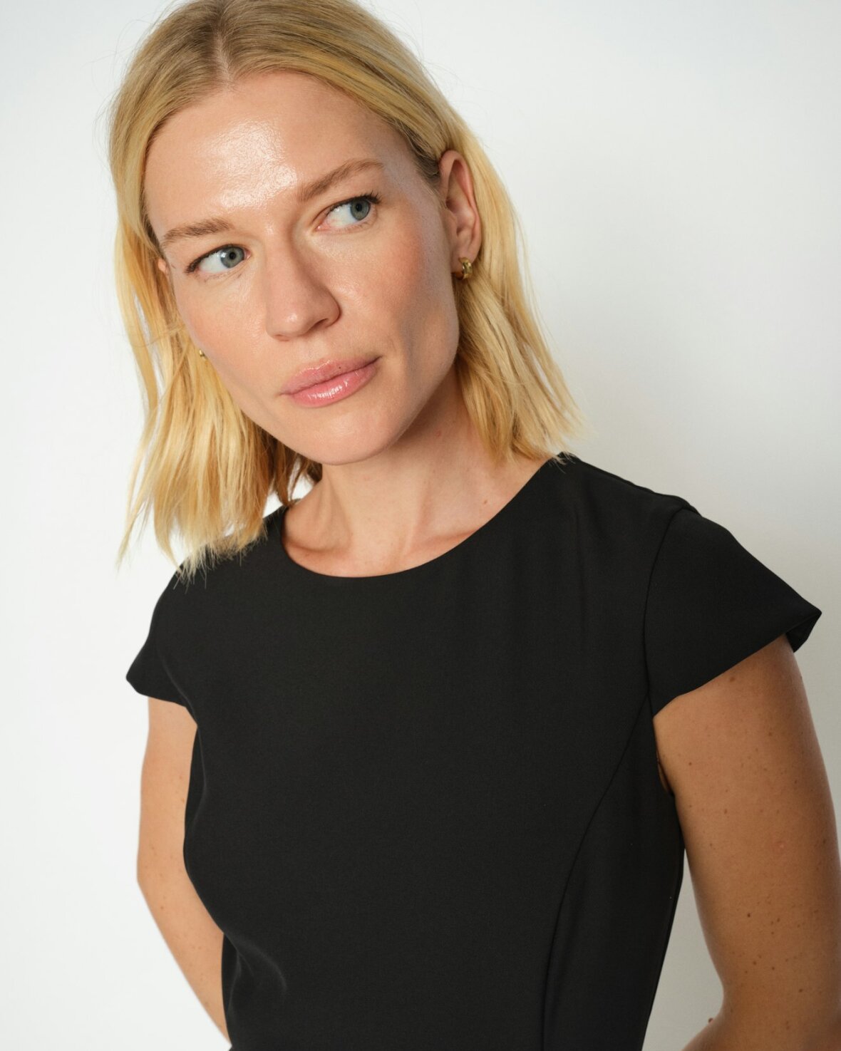 MMAUDREY MILEY DRESS - MOS MOSH er en smuk tidløse kjole er designet i en flatterende, feminin silhuet med korte ærmer, en rund halsudskæring og et taljedefinerende bindebælte. Den slanke form suppleres af diskrete indsnit og en lille slids foran for nem bevægelse. Den har lynlåslukning bagpå og et minimalistisk æstetik, hvilket gør den til et sandt must-have i garderoben. Style den med hæle til formelle sammenkomster, eller dress den ned med flade sko for hverdagselegance.Kvalitet: 100 % Polyester