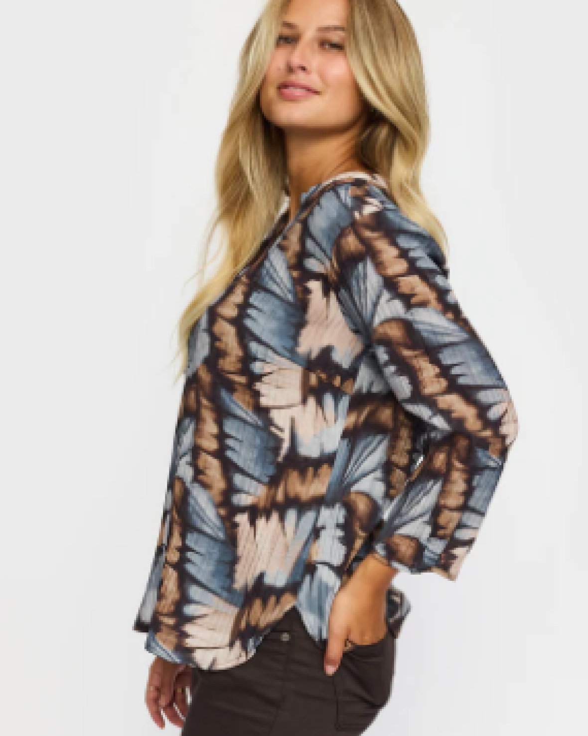 AMOA BLUSE 2-BIZ Bluse med trekvartærmer og knappelukning. Ærmerne har elastik detaljer.