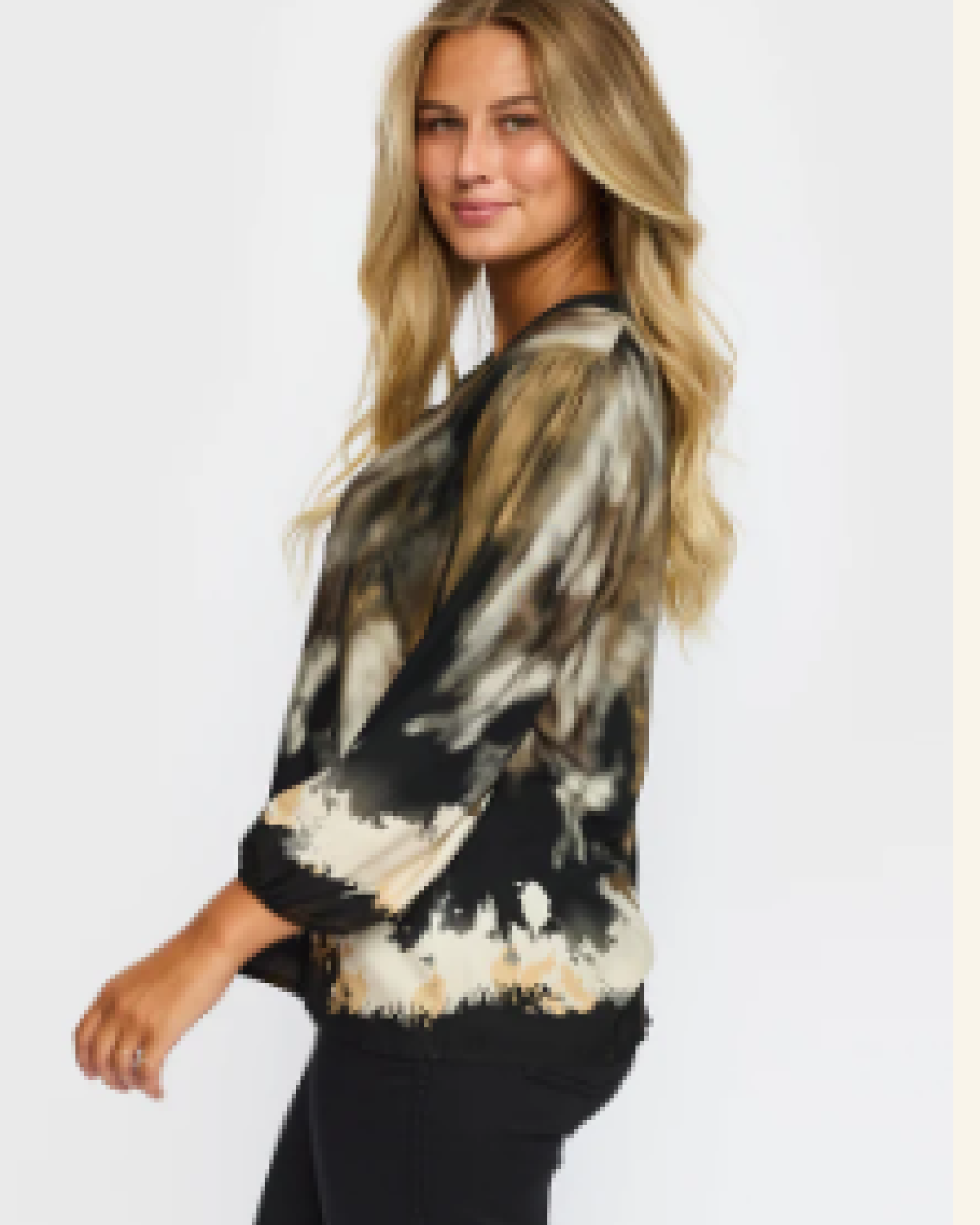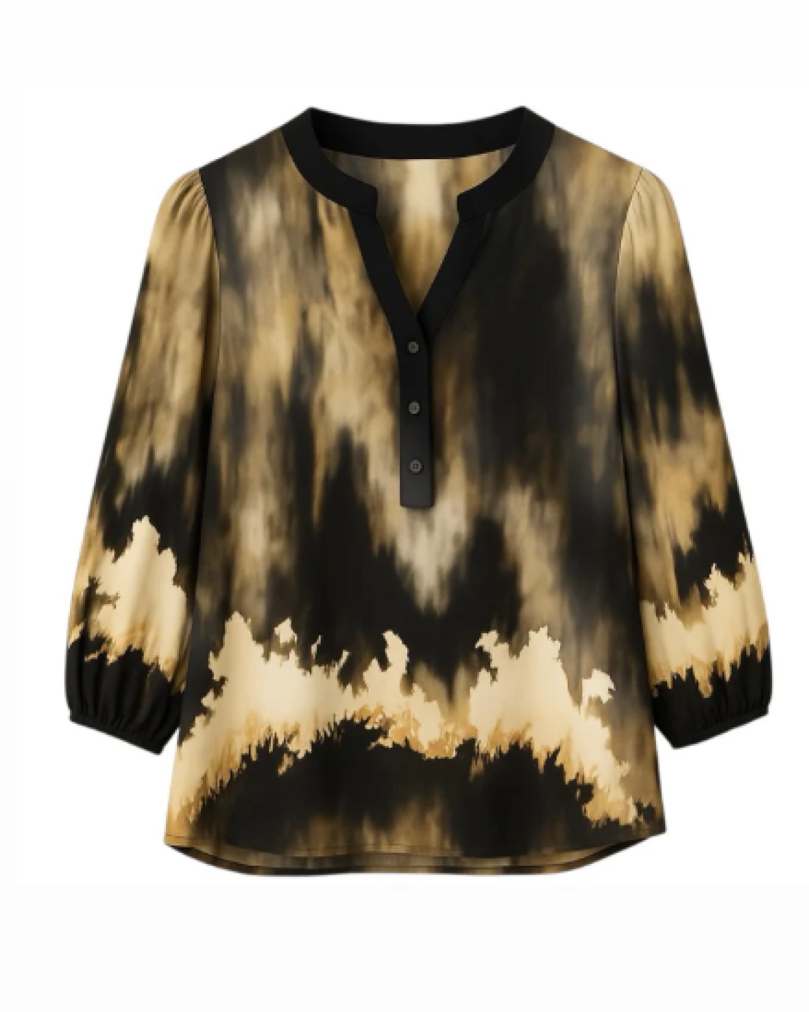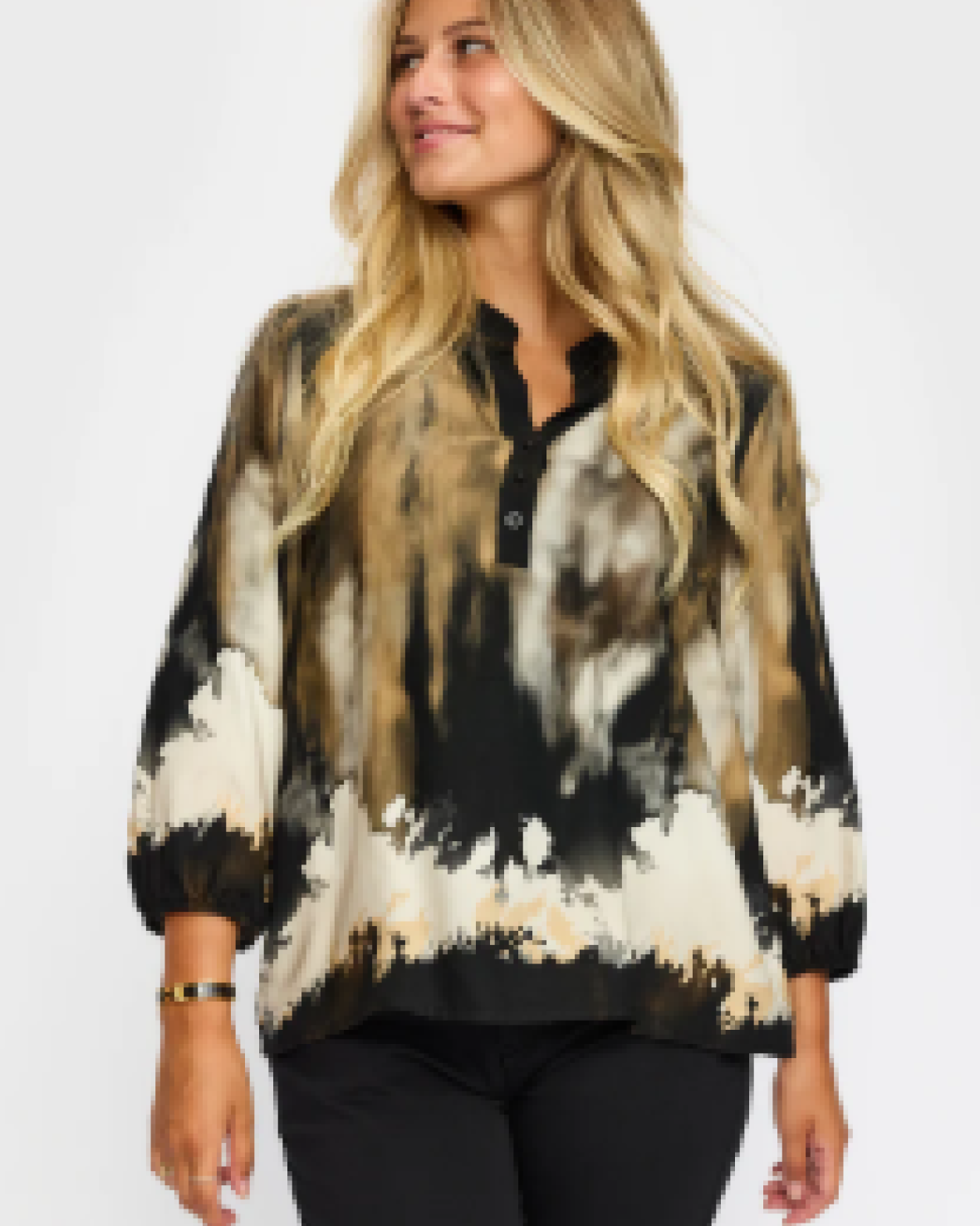 ELINE BLUSE 2-BIZ Bluse med trekvartærmer og V-udskæring med stolpelukning og knapper.