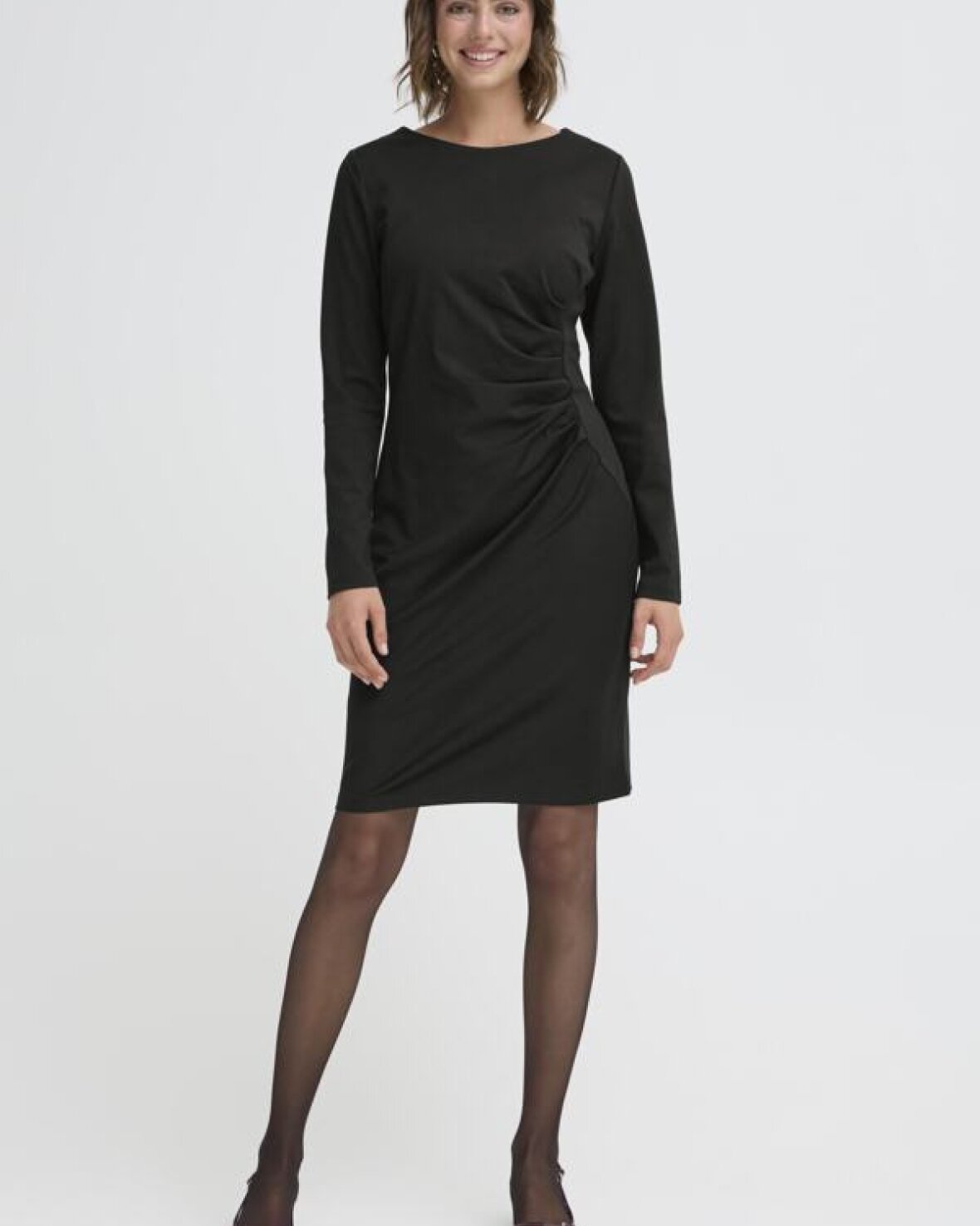FRBLAZER KJOLE 4-FRANSA er en elegant, klassisk blazer kjole i et moderne design, der er velegnet til både kontor og fest. Kjolen kendetegnes ved sin lange, slanke silhuet, en rund halsudskæring og lange ærmer.Kvalitet: 74% Polyester, 22% Viskose, 4% Elastan.