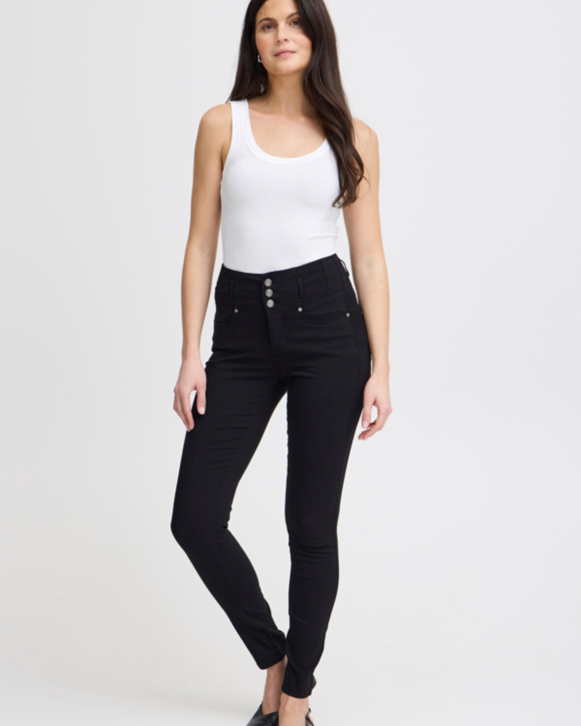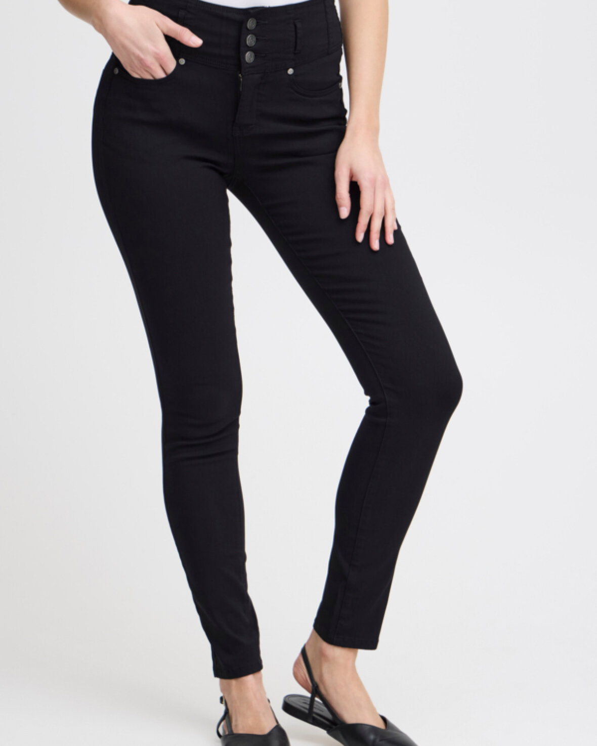 FRZALIN HANOI 2 PANT - FRANSA Skinny jeans med høj talje giver en smigrende pasform med stræk for komfort. Moderne design med tre knapper og fem lommer, perfekt til hverdag.Kvalitet: 77% Viskose, 20% Polyamid, 3% Elastan