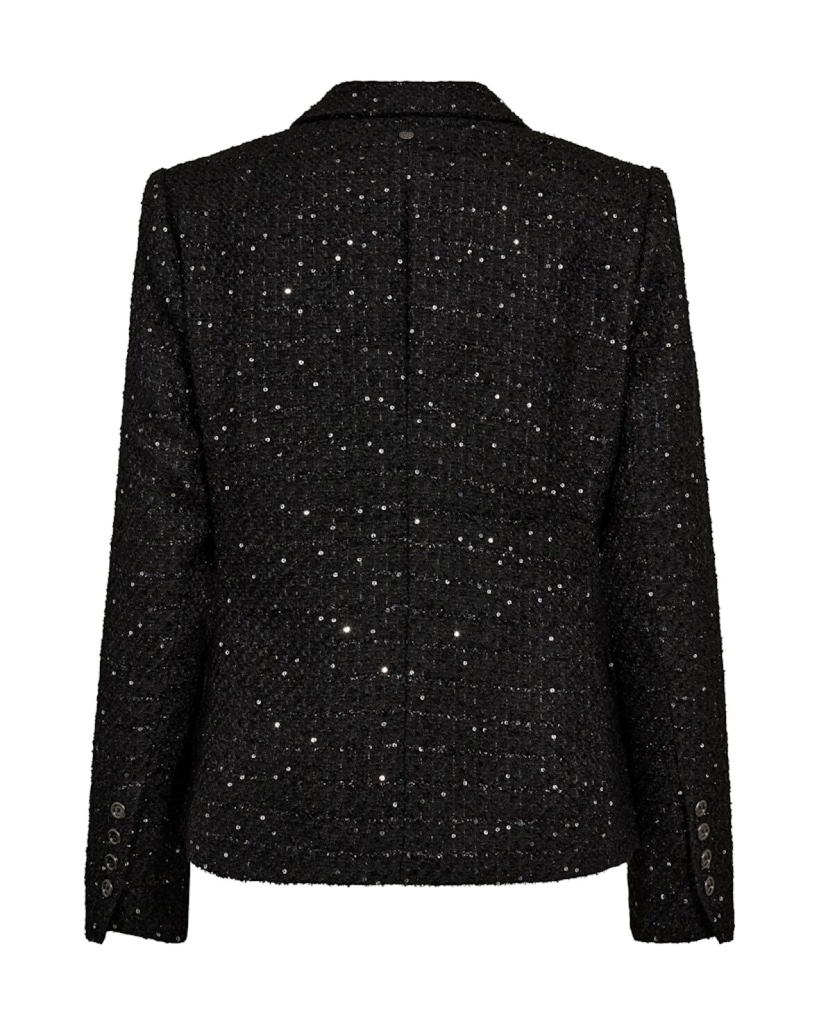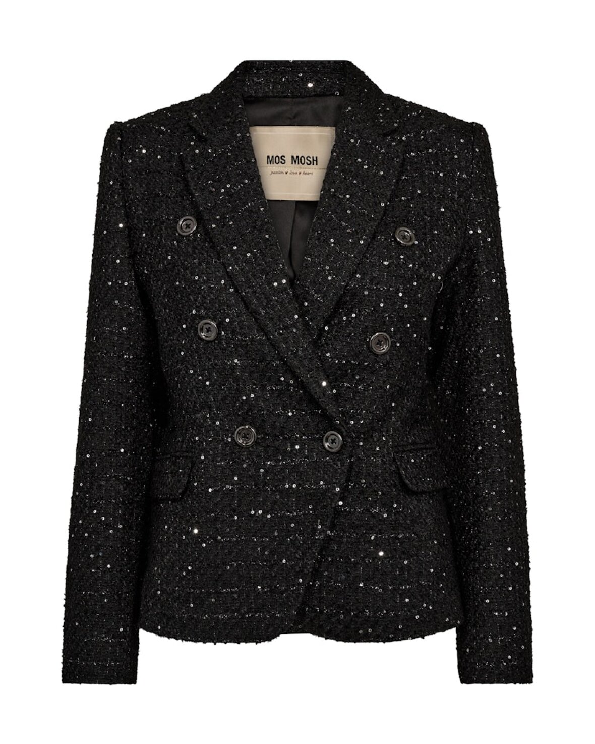 MMBELIZA BOUCE BLAZER - MOS MOSH er et ikonisk valg med et strejf af glamour. Denne sorte blazer kombinerer klassisk skrædderi med diskret glitrende detaljer, der fanger lyset på den mest sofistikerede måde. Perfekt til aftener, hvor du vil udstråle styrke og stil – eller til hverdag, når dit outfit skal have et eksklusivt løft uden at miste sin kant.Kvalitet: 50 % Uld, 50 % Polyester