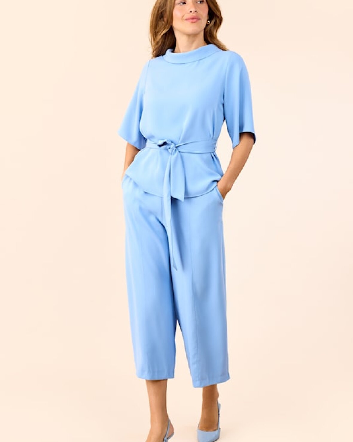 BLUSE 7486 - MOLLY JO er en elegant bluse fra Molly Jo, designet med fokus på både komfort og et flatterende udtryk. Blusen har en klassisk pasform, der falder let omkring kroppen og giver et sofistikeret look til både hverdag og fest.Modellen er skabt i et blødt og behageligt materiale, som gør den dejlig at have på hele dagen. Den har en feminin halsudskæring og smukke detaljer, der tilfører et stilrent og moderne udtryk.Kvalitet: 100% polyester