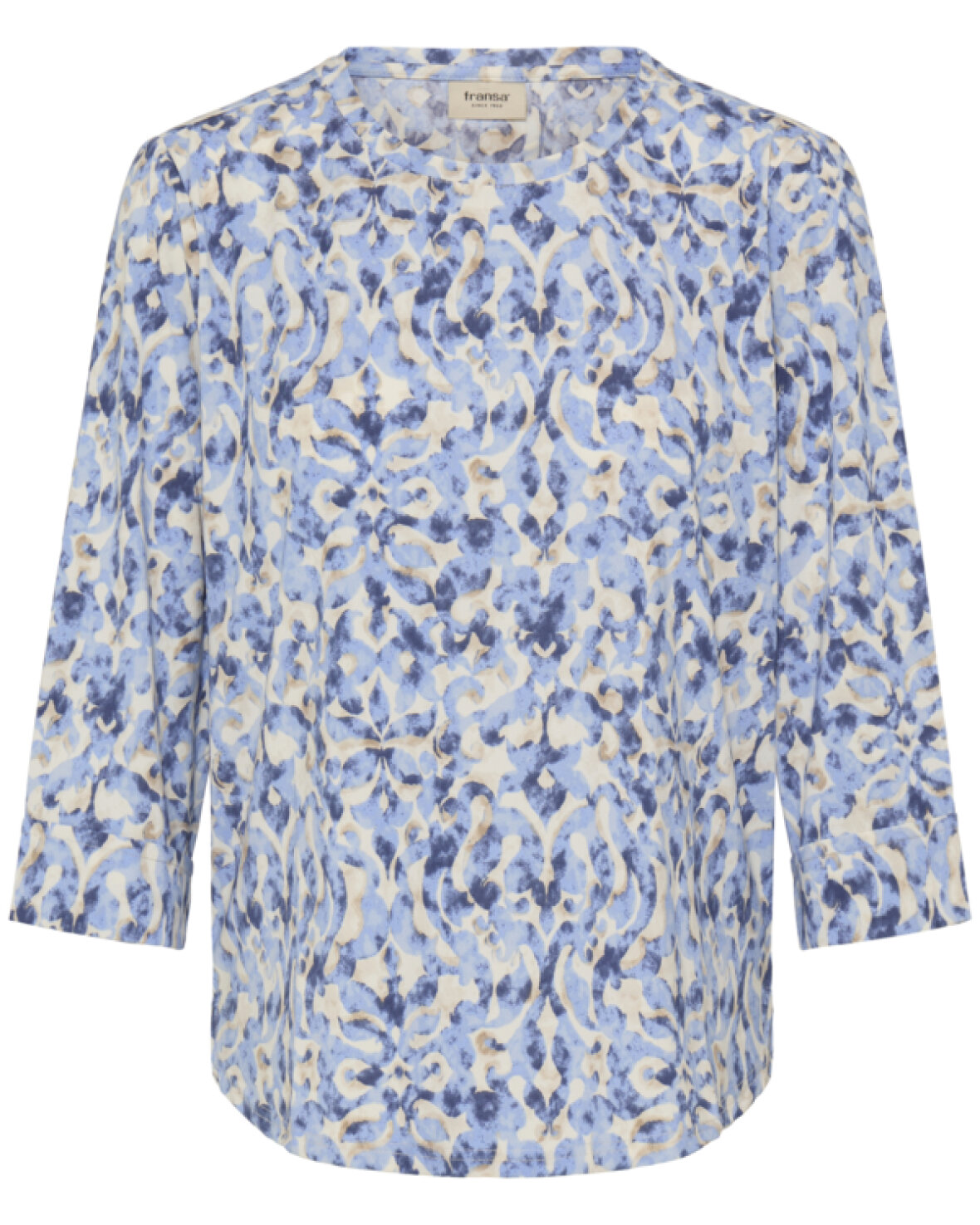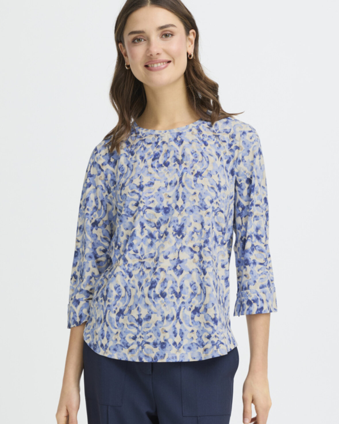 FRSEEN TEE 8 - FRANSA Mønstret top med lige pasform, rund halsudskæring og 3/4-ærmer. Har gennemgående print og let længere ryg for moderne udtryk.Kvalitet: 95% Polyester, 5% Elastan
