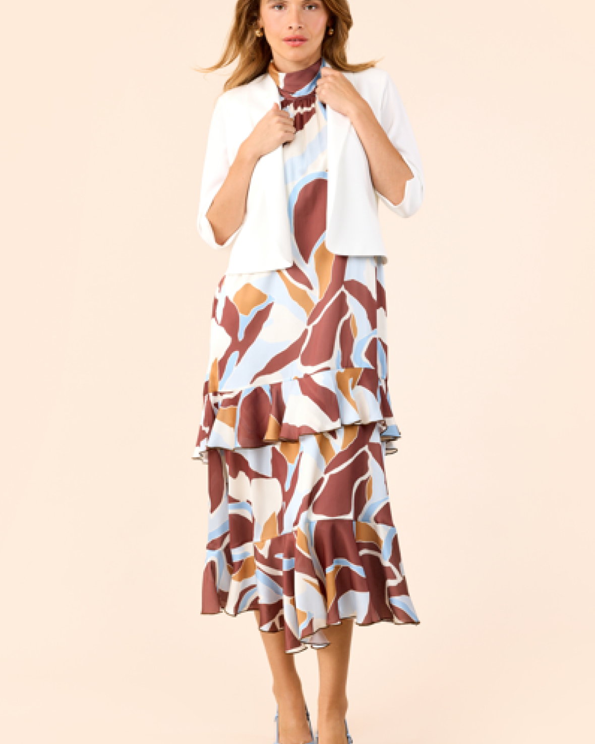 KJOLE 7901 - MOLLY JO Denne kjole har et elegant og feminint udtryk med et let og smukt fald, der giver et flot flow i bevægelse. Overdelen er designet med en flatterende udskæring, som skaber en harmonisk balance mellem det enkle og det eksklusive. Taljen markeres let, hvilket giver en smuk silhuet uden at stramme, og skørtet falder blødt og luftigt omkring benene. Kjolen føles behagelig at have på og er nem at style både op og ned alt efter anledning.